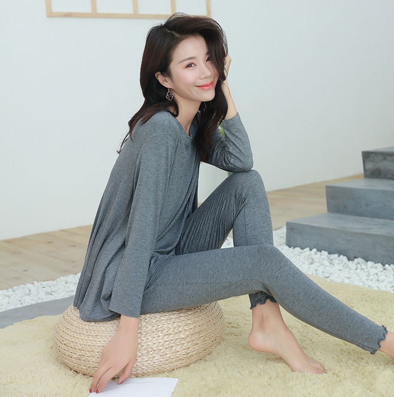21 모달 잠옷 여자의 봄과 가을 느슨한 바지 긴 소매 모달 가정 옷 세트 겉옷 느슨한 탄성 착용
