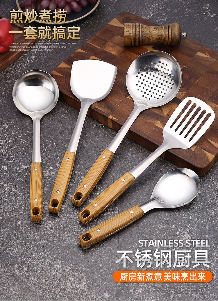 끓는 방지 모조 나무 손잡이 스테인레스 스틸 주걱 숟가락 요리 주걱 부엌 세트 부엌 가정 요리 숟가락