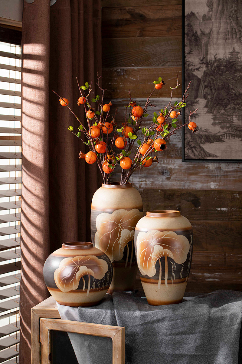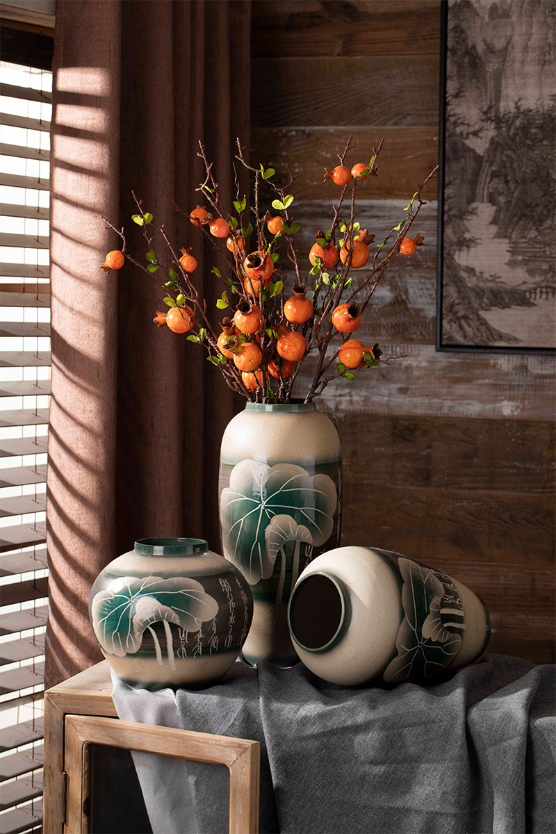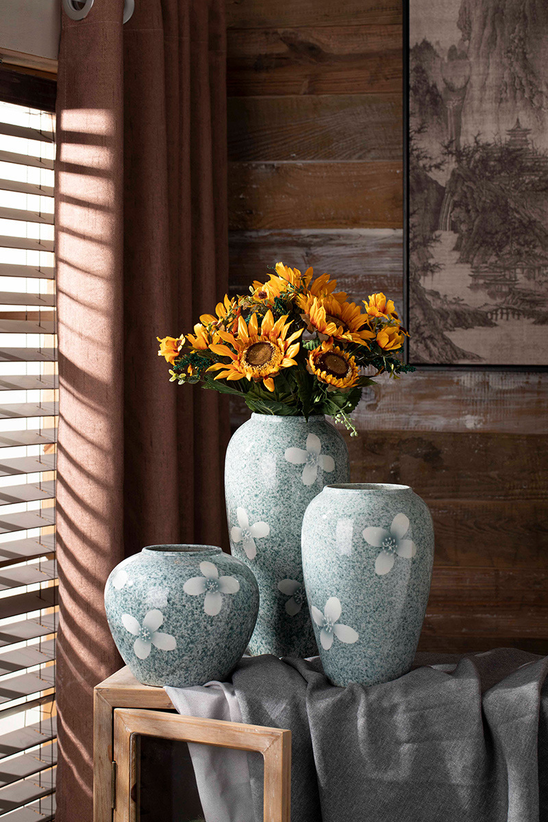 새로운 중국 스타일 현대 세라믹 손으로 그린 꽃병 가정 장식 테이블 상단 입구 찻집 꽃 장식품