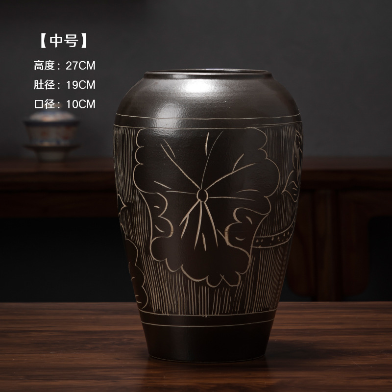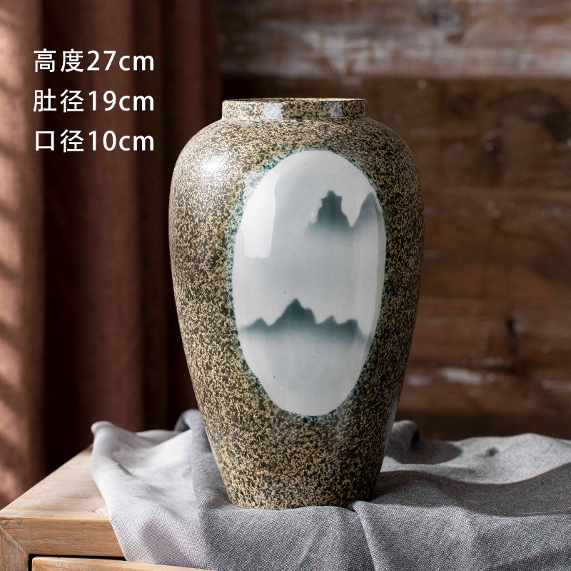 새로운 중국 스타일 현대 세라믹 손으로 그린 꽃병 가정 장식 테이블 상단 입구 찻집 꽃 장식품스토어 가기