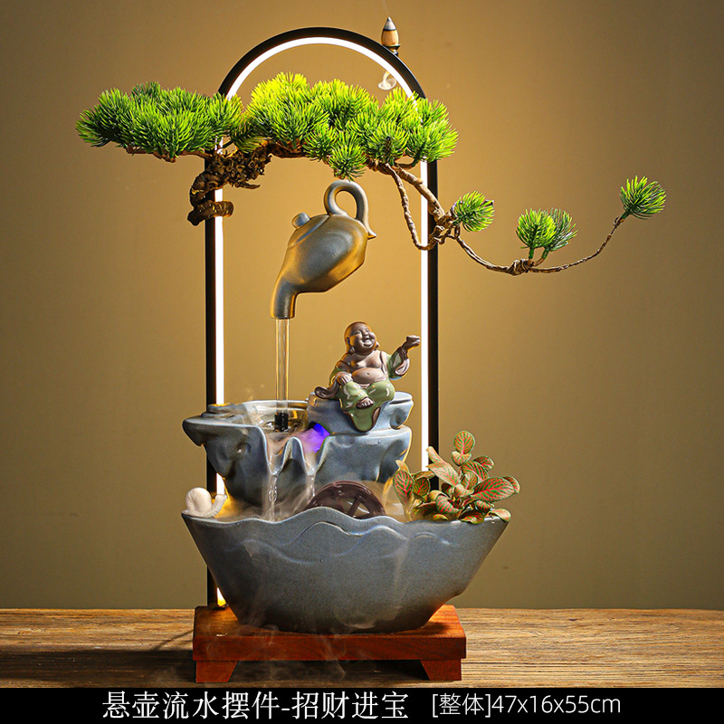새로운 중국 스타일 교수형 냄비 흐르는 물 열기 로커 리 분수 럭키 거실 사무실 창조적 인 선 선물을주는 집들이 장식품스토어 가기