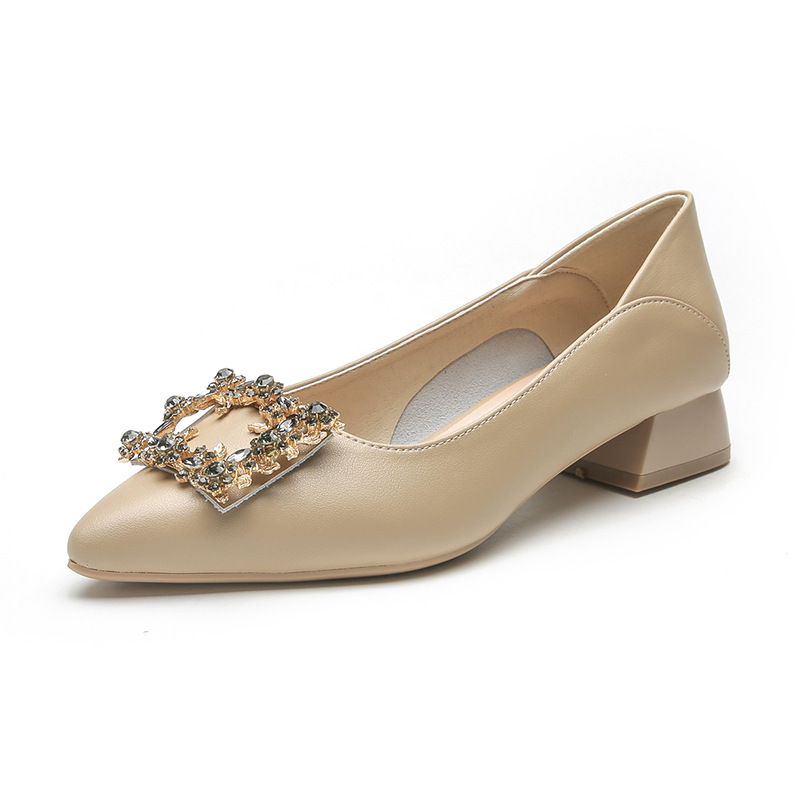 Jinfuli S600-13 정품 가죽 여성 신발 2024 새로운 부드러운 가죽 부드러운 밑창 캐주얼 다목적 패션 미드힐 싱글 슈즈스토어 가기
