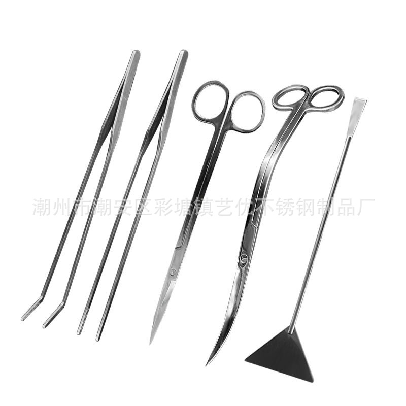 물 잔디 가위 더 긴 족집게 클립 수족관 도구 세트 물고기 탱크 청소 풍경 조종 편평한 모래 삽스토어 가기