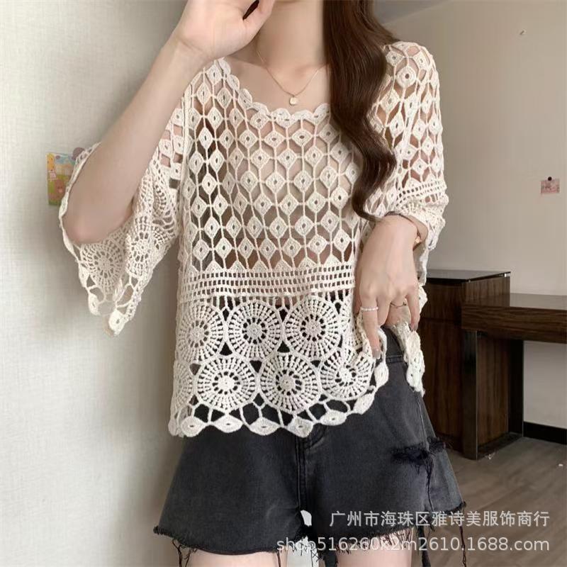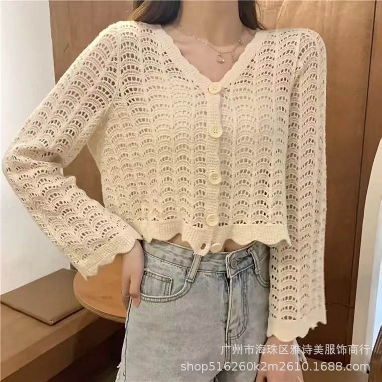 새로운 가을, 겨울 스퀘어 넥 스타일 중공 니트 카디건 여성의 게으른 스타일 디자인 루즈하고 다재다능한 작은 셔츠와 재킷 유행