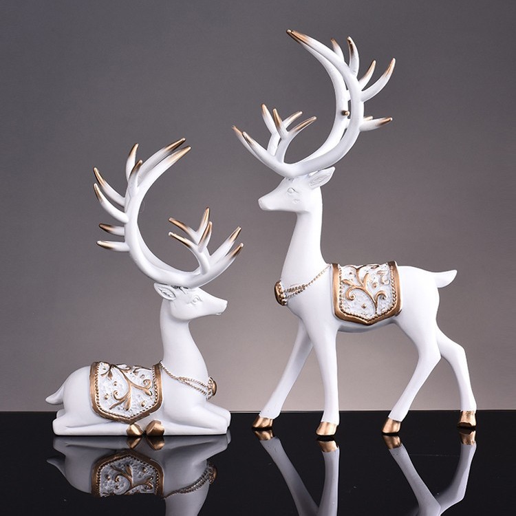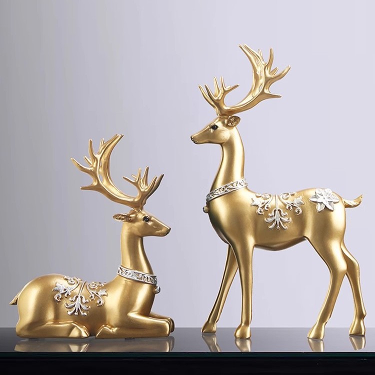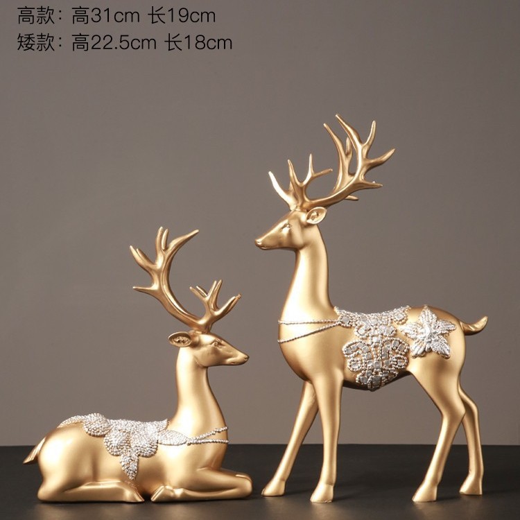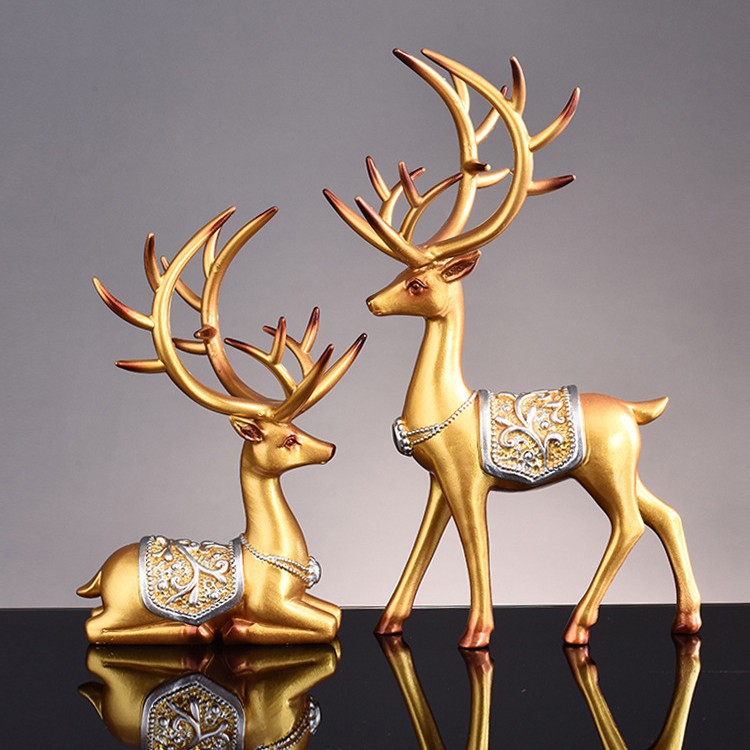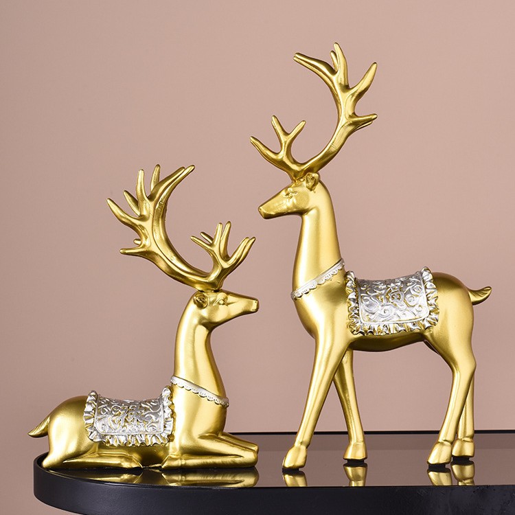 • 긴 뿔 스퀘어 패턴 커플 사슴 [골든]]
