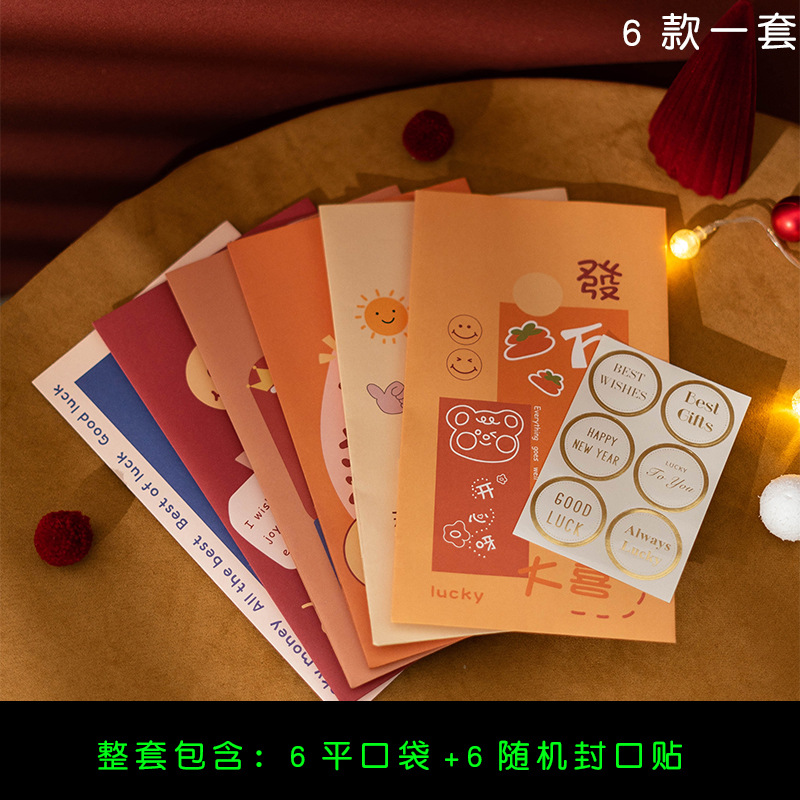 • 6 ZD061 Yuan Qi 새해 플랫 포켓 세트; 흰색 판지; 그림과 같이