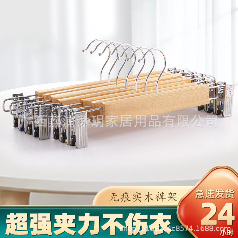단단한 나무 바지 랙 로그 색상 성인 의류 매장 바지 클립 교수형 원활한 미끄럼 방지 도매 어린이 가정용 스테인레스 스틸 클립