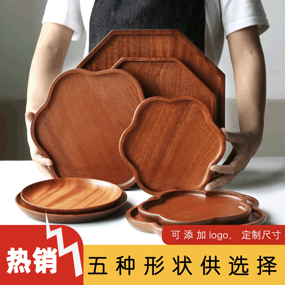 하오위안 일본식 접시 가정용 간단한 저녁 식사 접시 나무 쟁반 창조적 인 나무 접시 둥근 사각형 나무 쟁반스토어 가기
