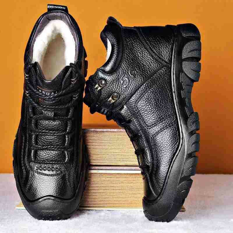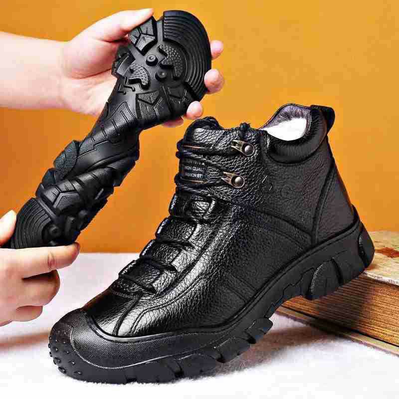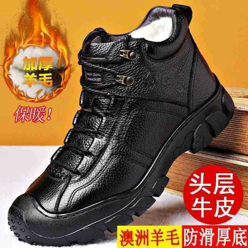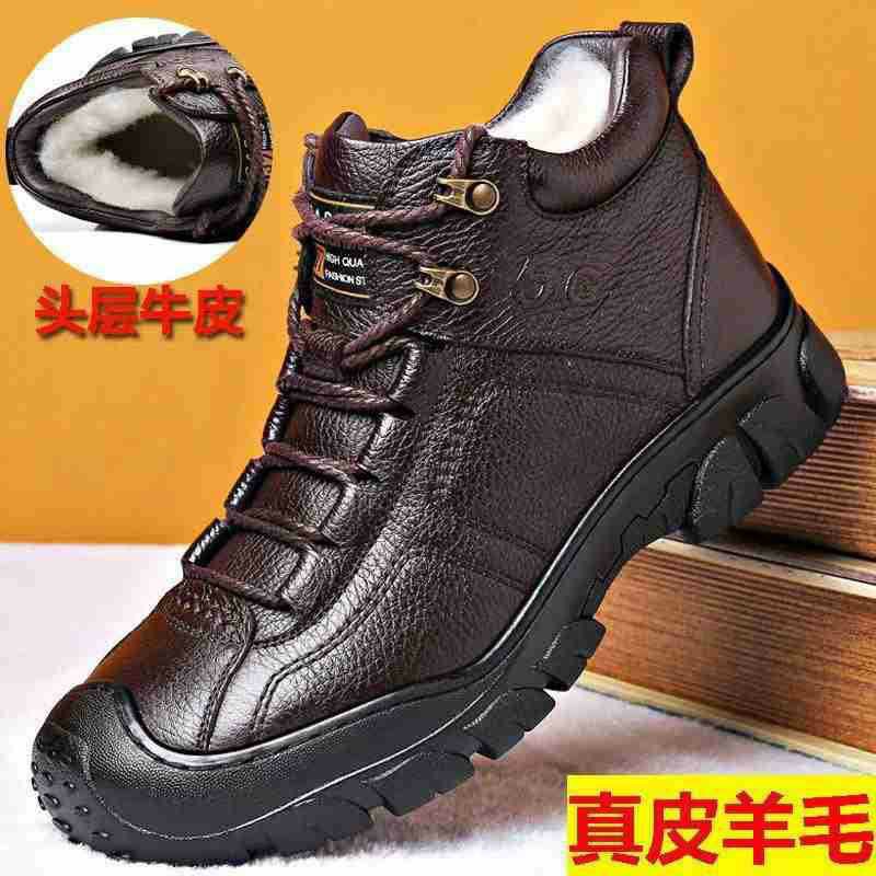 Mingfu 정품 가죽 울 하이탑 두꺼운 따뜻한 겨울 캐주얼 두꺼운 단독 야외 등산 탑 레이어 소가죽 한국식 면 신발