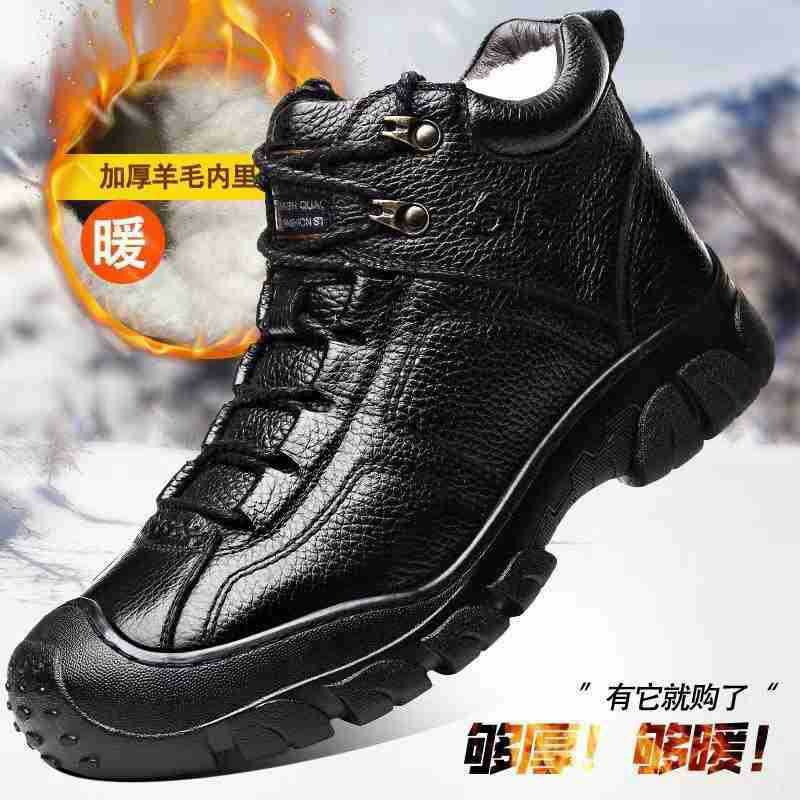 Mingfu 정품 가죽 울 하이탑 두꺼운 따뜻한 겨울 캐주얼 두꺼운 단독 야외 등산 탑 레이어 소가죽 한국식 면 신발스토어 가기