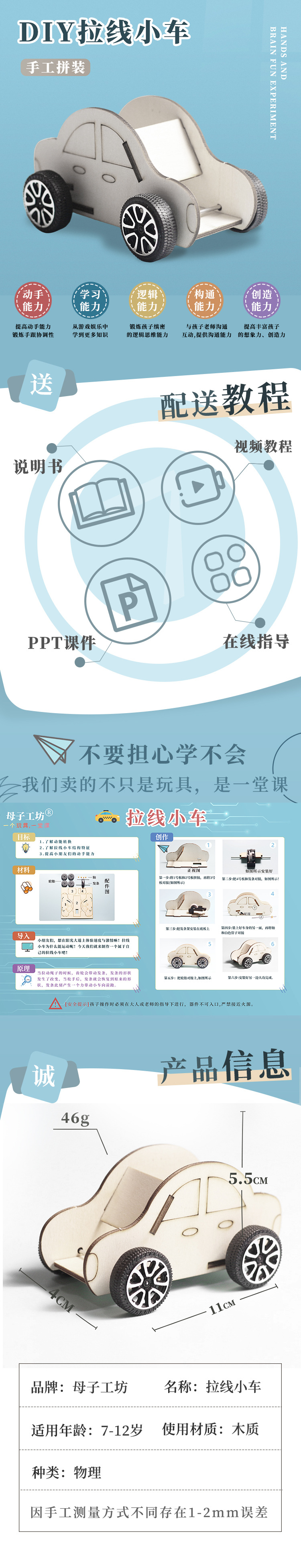 당기면 움직이는 자동차 과학 실험 어린이 유치원 초등학교 과학기술 소형 제작 목재 조립 게임 후레쉬카