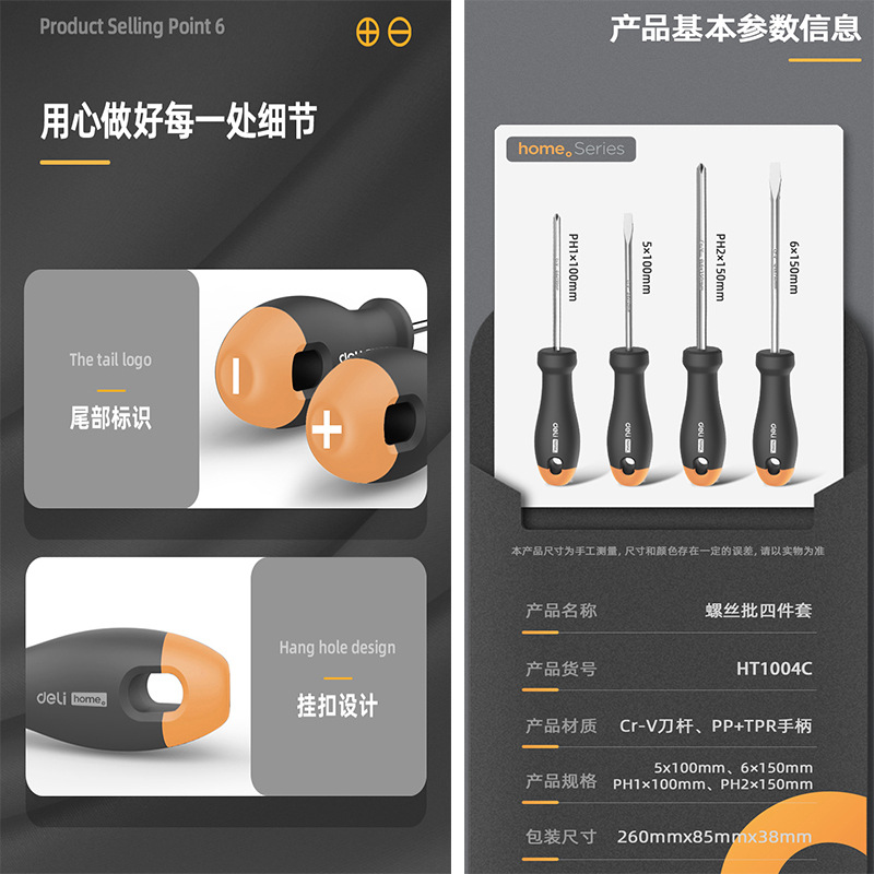 델리 도구 홈 스크루 드라이버 세트 필립스 스크루 드라이버 마그네틱 드라이버 HT1002 4 6 C L