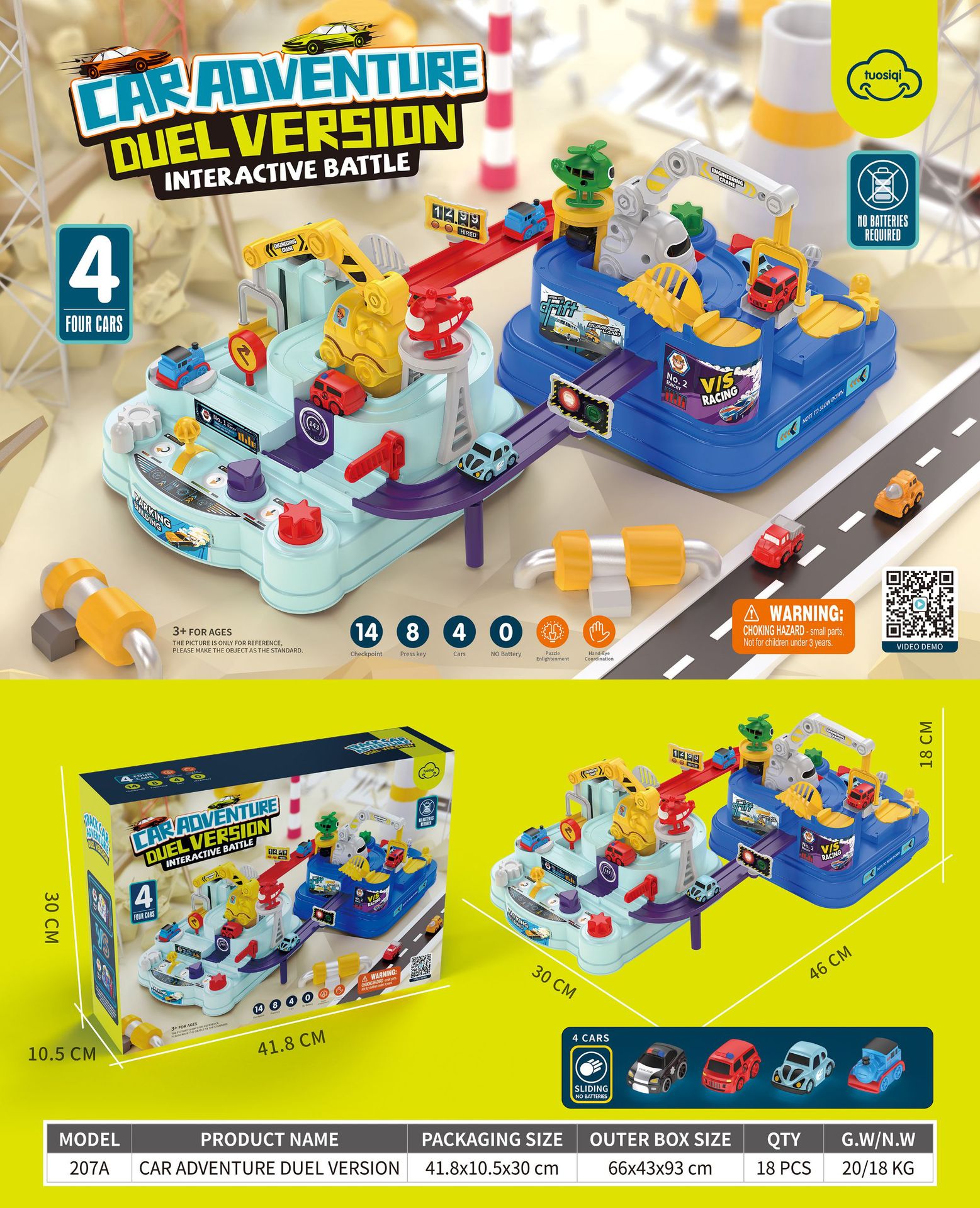 新品207A 双人对战冒险(标配4车版/套):彩盒:30X10.5X41.8CM,外箱:66*43*93cm,毛净重20/18KGS,单套毛重约1KG