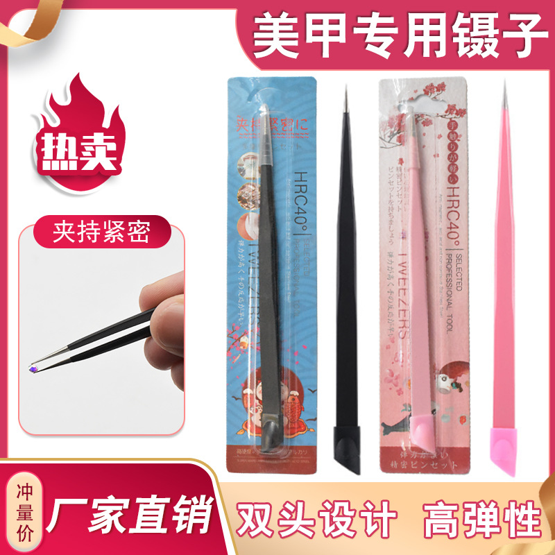 실리콘 프레스 스티커와 프로모션 네일 아트 더블 헤드 핀셋 스테인레스 스틸 네일 아트 뷰티 클립 데칼 골드 다이아몬드
