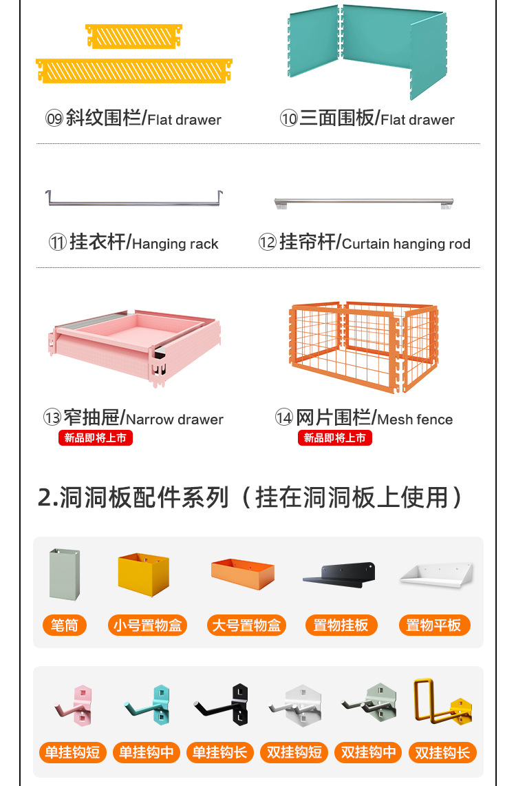 【펑양 수납 선반-액세서리】 원천 공장에서 생산된 구멍판+펜 홀더+후크+수납판 등 액세서리