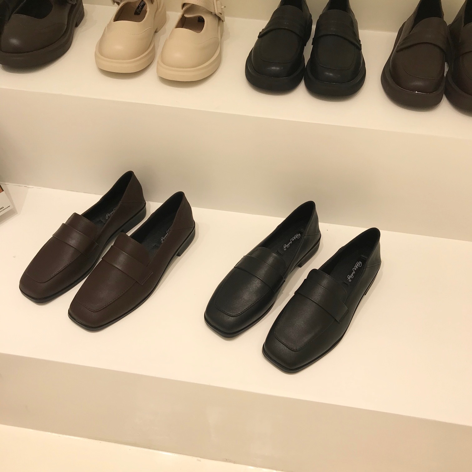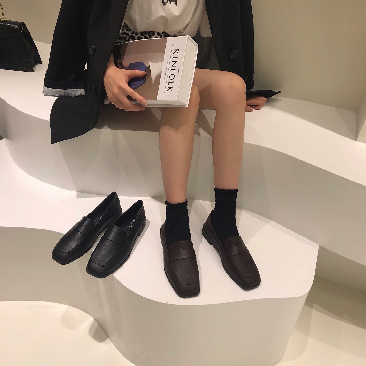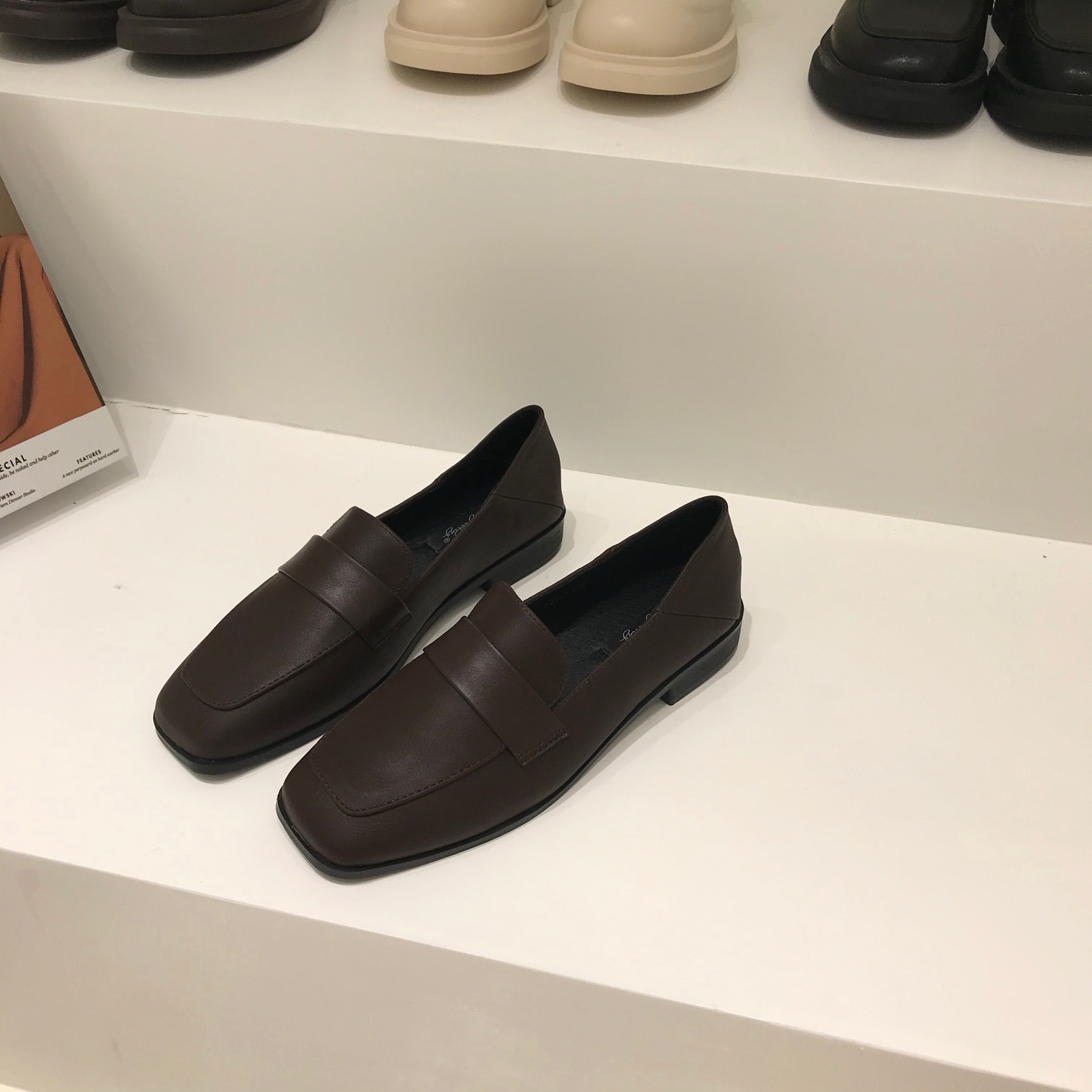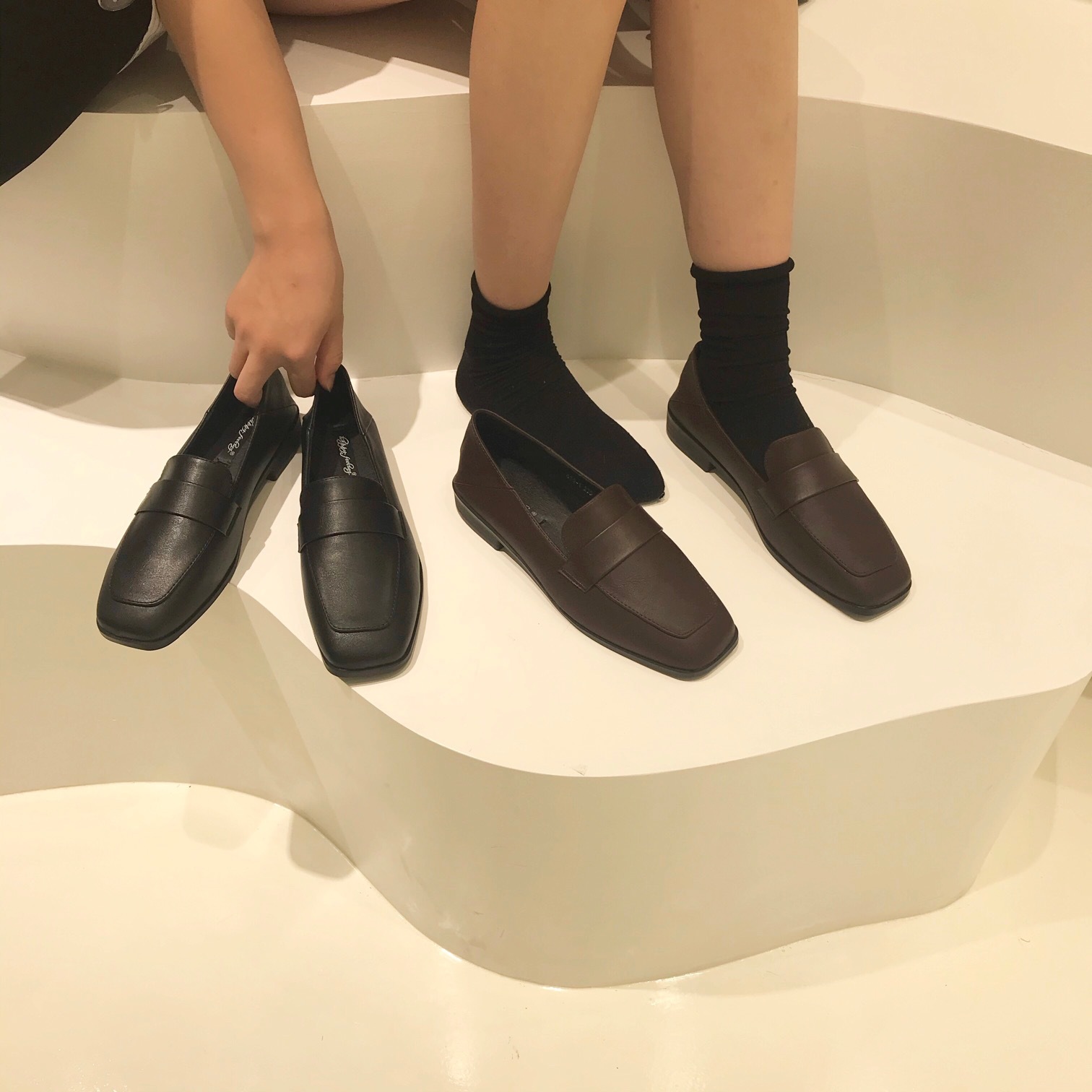 다크 브라운 작은 가죽 신발 여성의 2021 봄 가을 슬립온 더그 신발 일본 jk 플랫 부드러운 싱글 신발스토어 가기