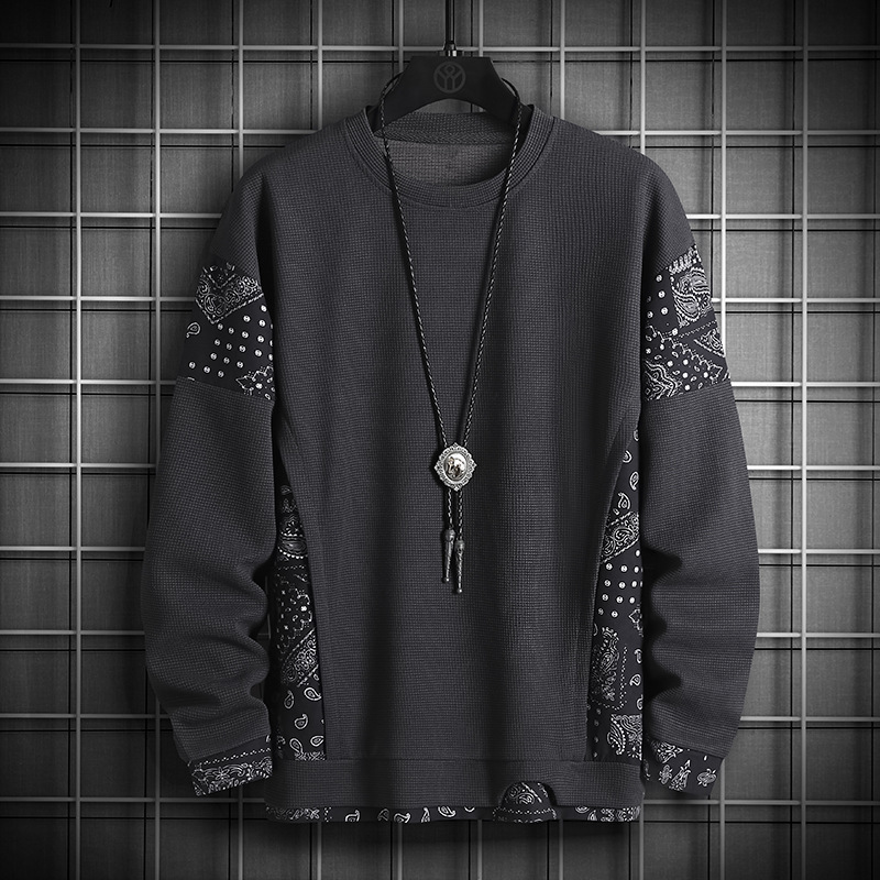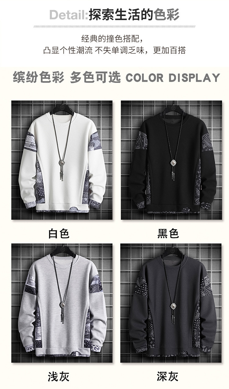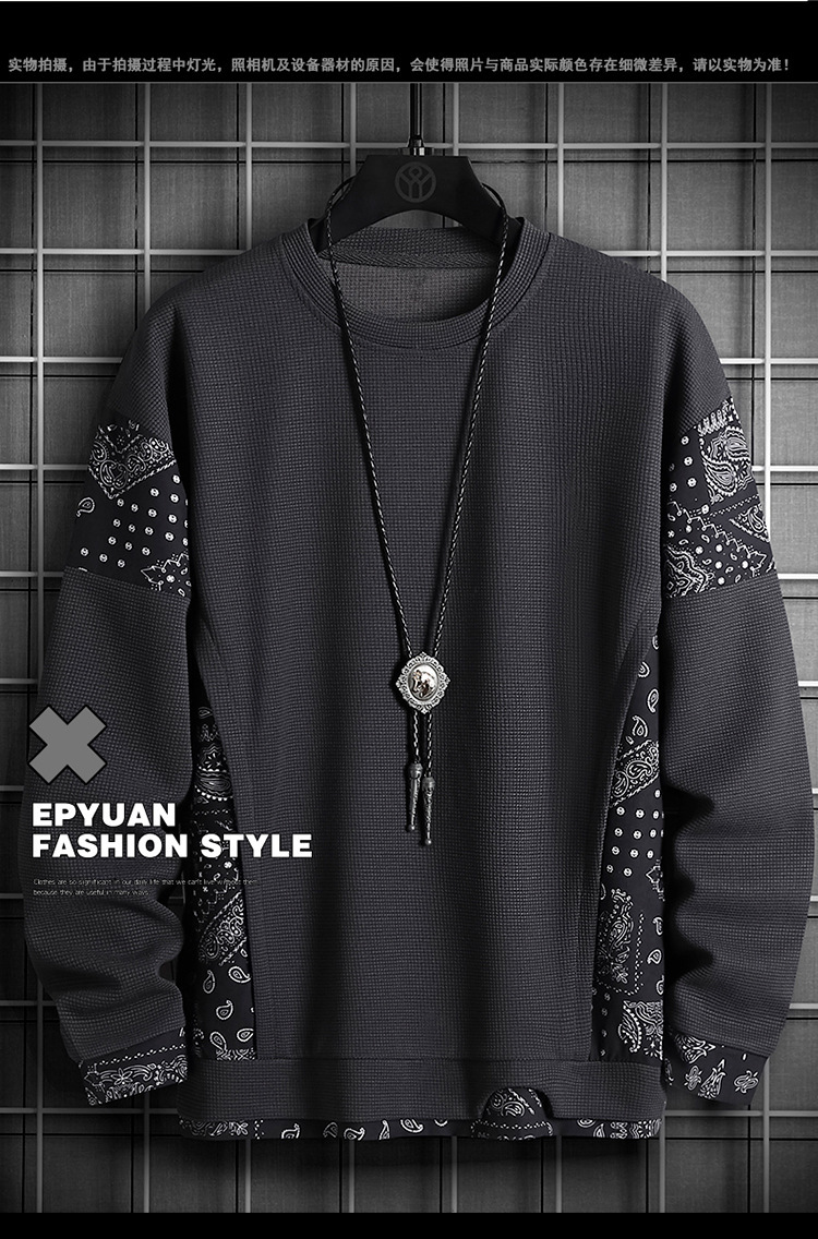 크로스 보더 6727 스웨터 남성용 플러스 사이즈 와플 컬러 대비 스티칭 가짜 투피스 노치 풀오버 긴 소매 베이스 셔츠스토어 가기