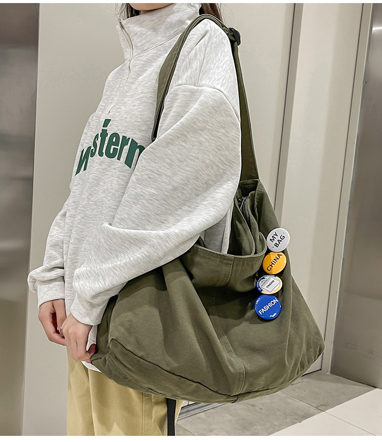 크로스바디 백 여성 대학생 수업 가방 여성 이중 사용 스타일 일본식 대용량 Ruiying 캔버스 가방 숄더백스토어 가기