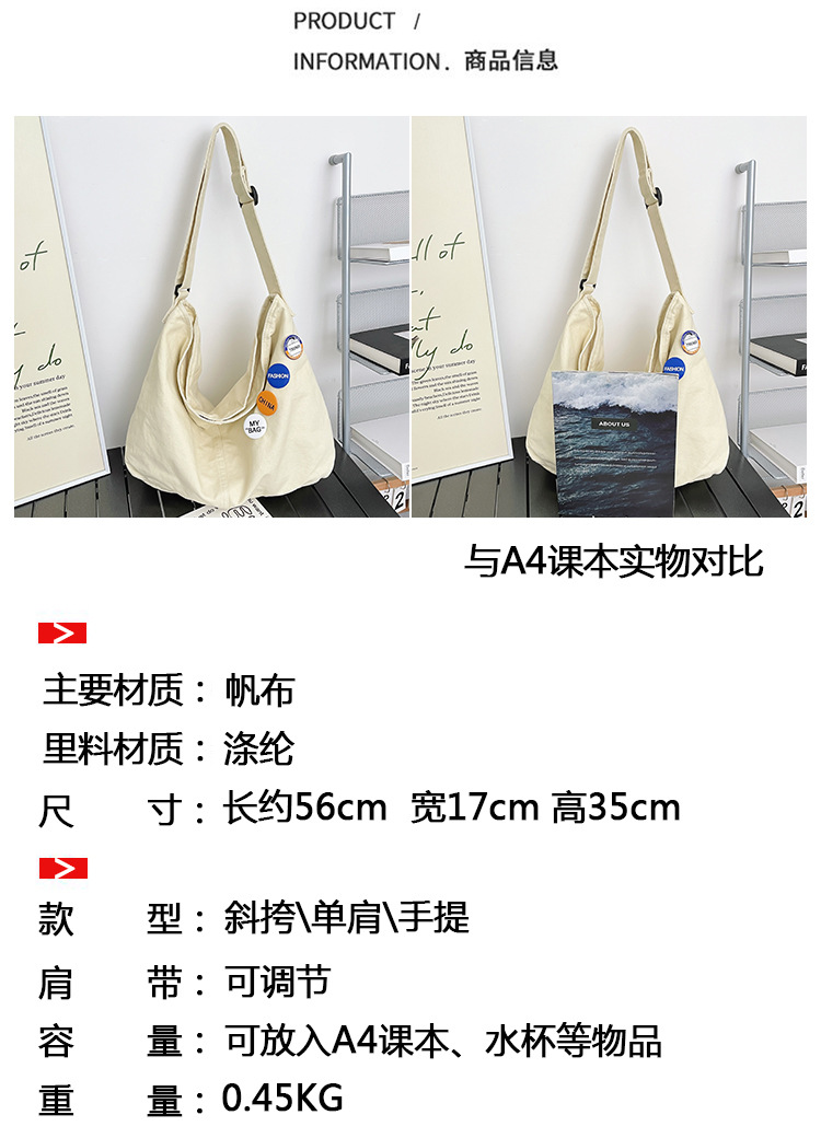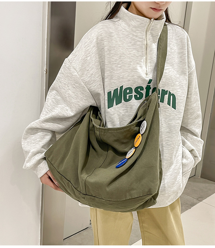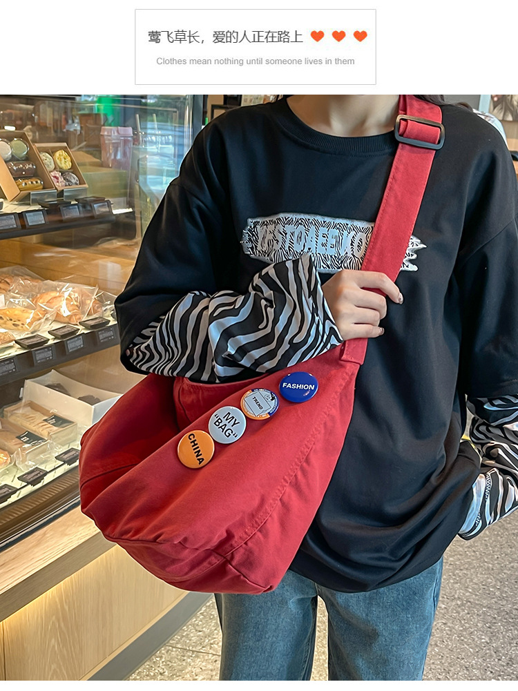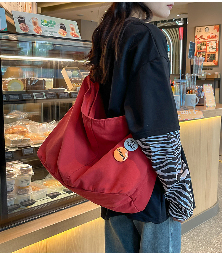 크로스바디 백 여성 대학생 수업 가방 여성 이중 사용 스타일 일본식 대용량 Ruiying 캔버스 가방 숄더백