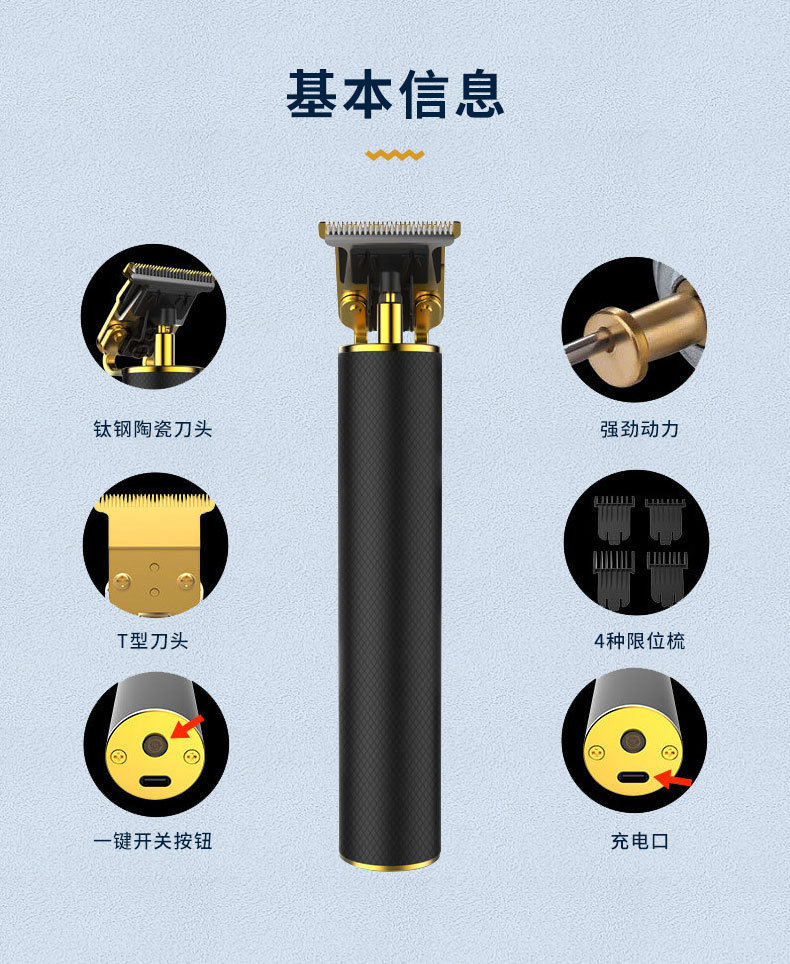 가정용 USB 충전식 세라믹 커터 헤드 레트로 오일 헤드 조각 푸시 화이트 푸시 라이트 전기 클리퍼 헤어 클리퍼스토어 가기