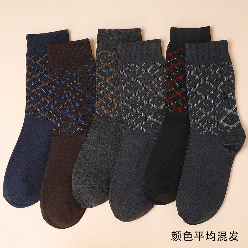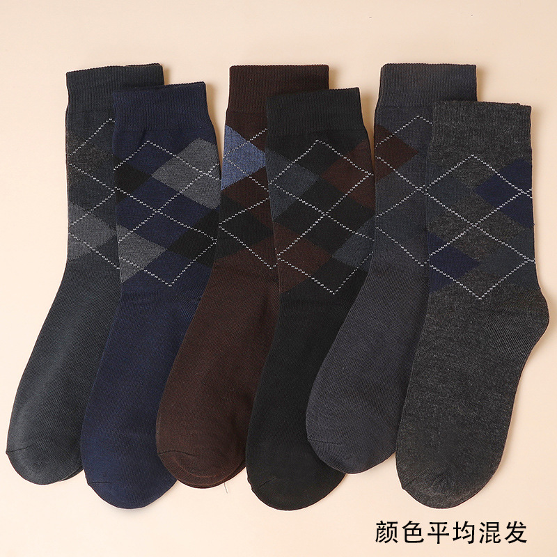 가을과 겨울 클래식 마름모꼴 영국 스타일 플러스 사이즈 남성의면 양말 단색 비즈니스 남성 양말 중년 하이 양말스토어 가기