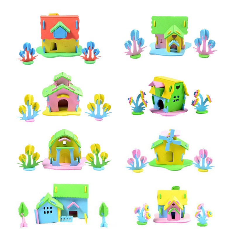 EVA 하우스 모델 3 차원 퍼즐 어린이 교육 수제 재료 유치원 놀이 집 조립 장난감