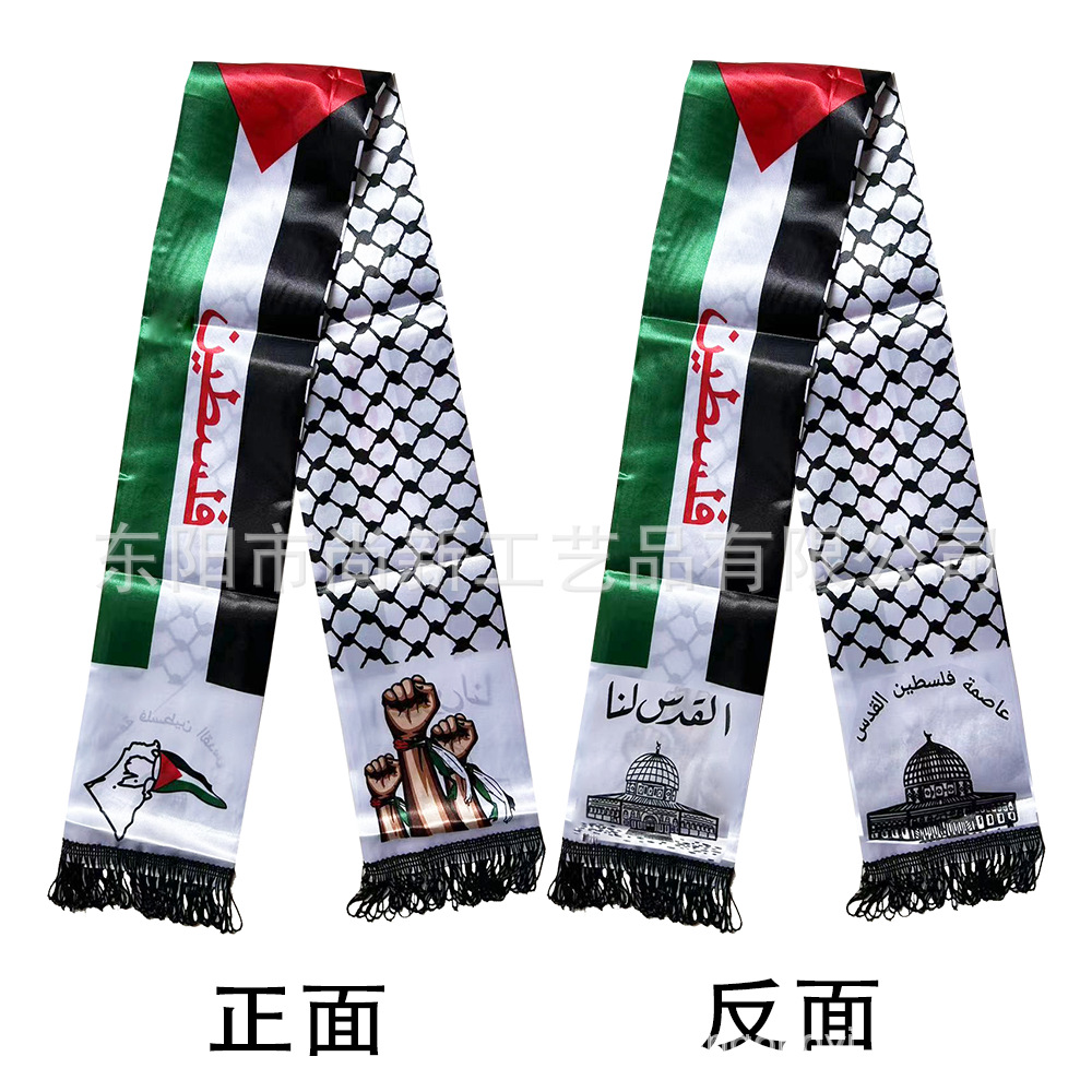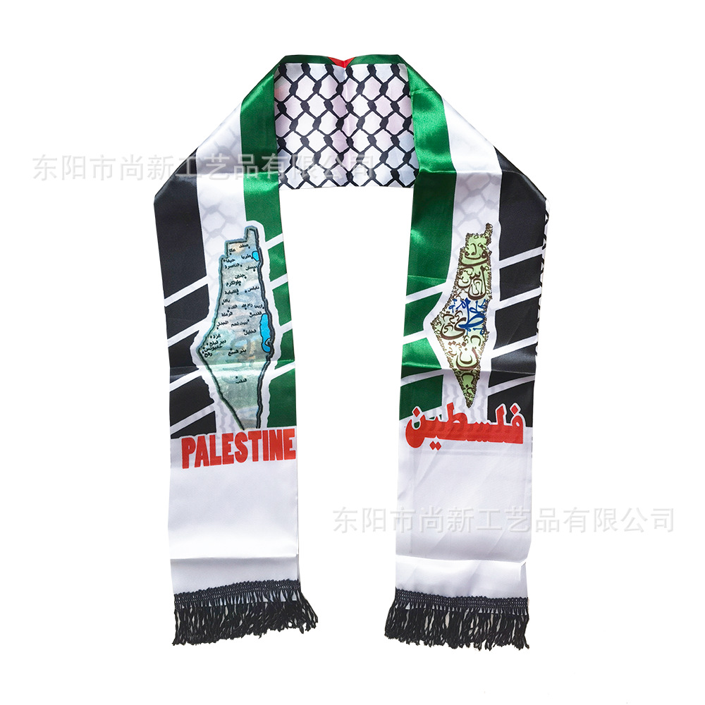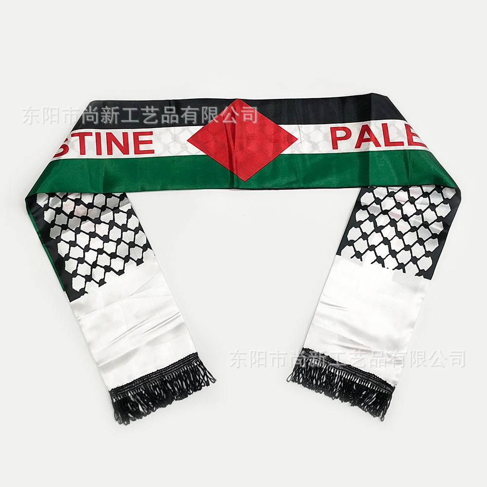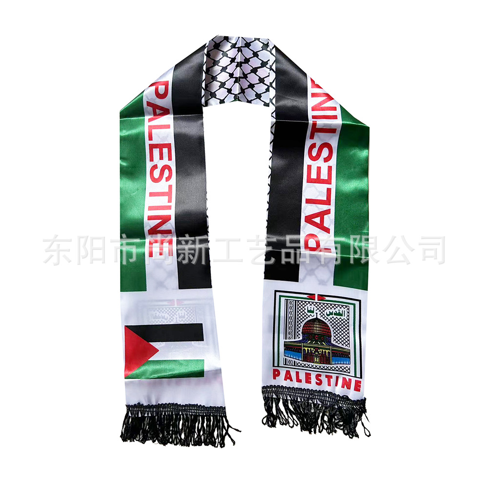 팔레스타인 스카프 새틴 폴리 에스테르 팔레스타인 국기 스카프 국경 간 재고 목 결혼식 장식스토어 가기