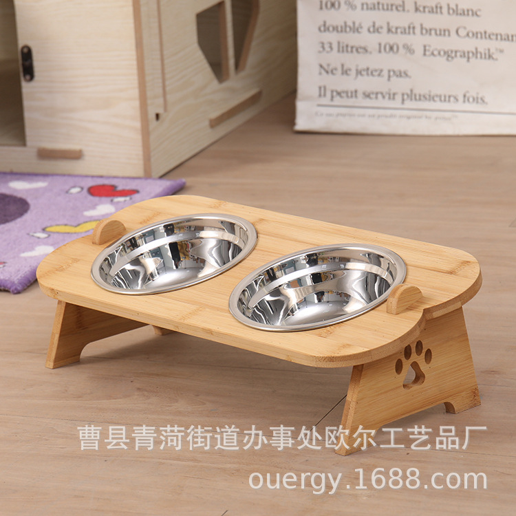 나무 애완 동물 그릇 랙 조정 가능한 틸트 입 스테인레스 스틸 고양이 그릇 랙 더블 그릇 대나무와 나무 애완 동물 냄비 북유럽 스타일스토어 가기