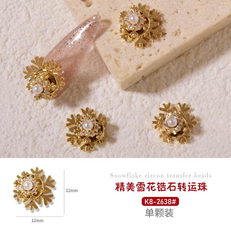 2023 새해 네일 아트 전송 비즈 지르콘 눈송이 진주 고속 회전 시간 대비 고급 네일 다이아몬드 액세서리