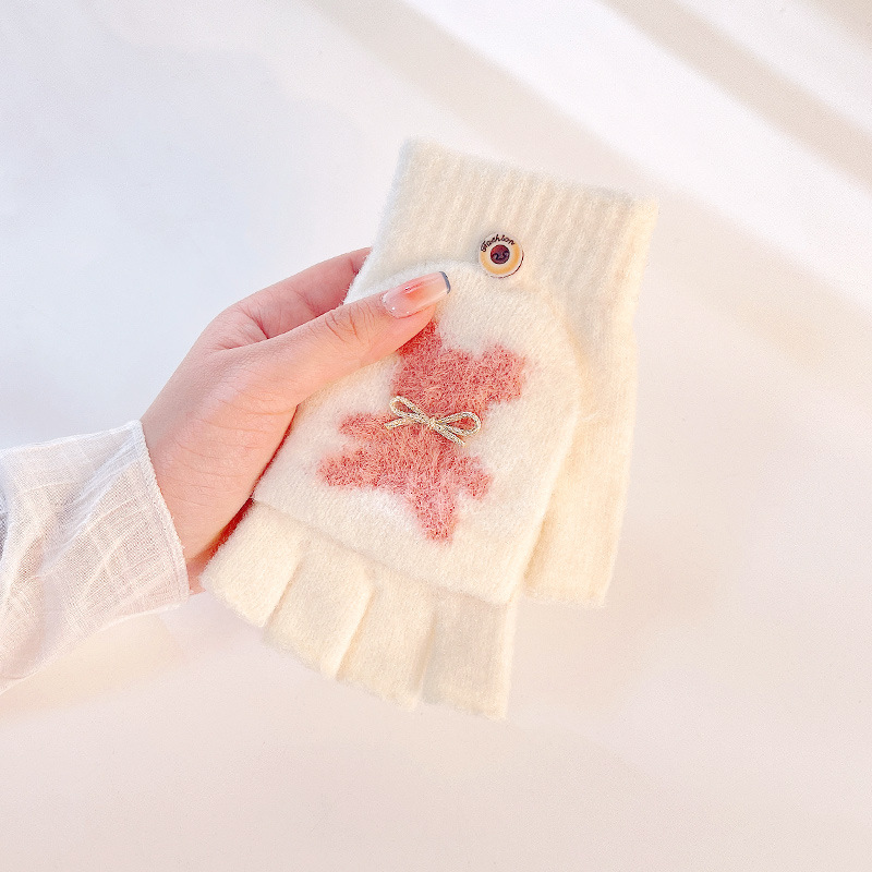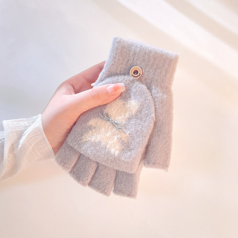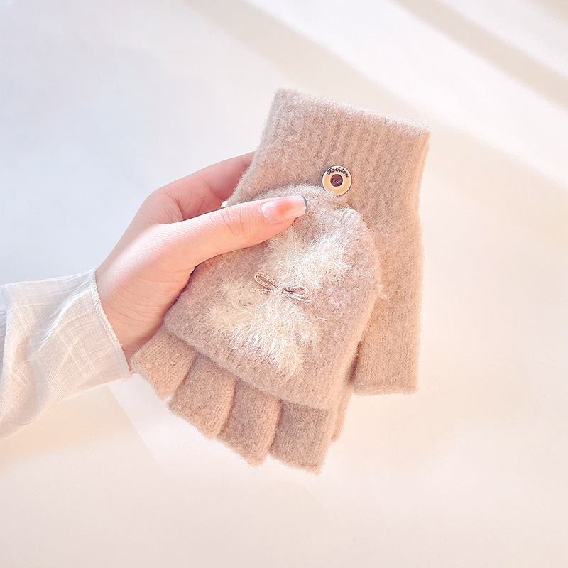 겨울 따뜻한 니트 장갑 여성 사이클링 패딩 방한 터치 스크린 귀여운 플러시 반 손가락 장갑 도매 DZ127스토어 가기