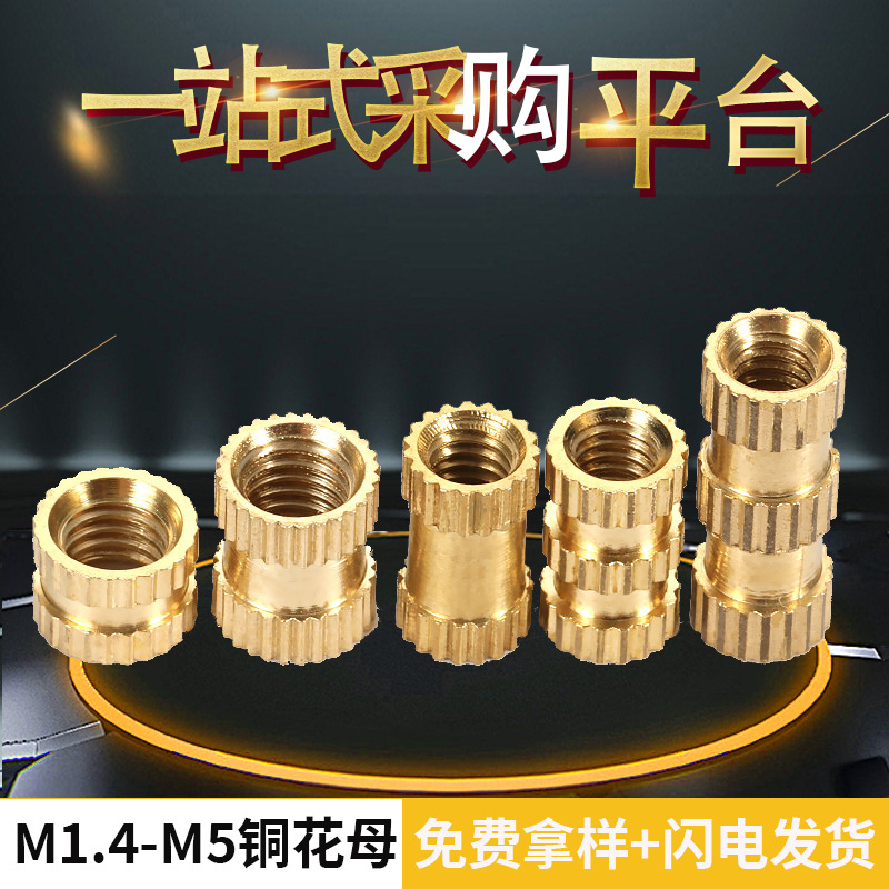 M2 사출 구리 너트 M3 구리 삽입 M2.5 널링 너트 M4 관통 구멍/블라인드 홀/인치 구리 꽃 마더 M5M6M8