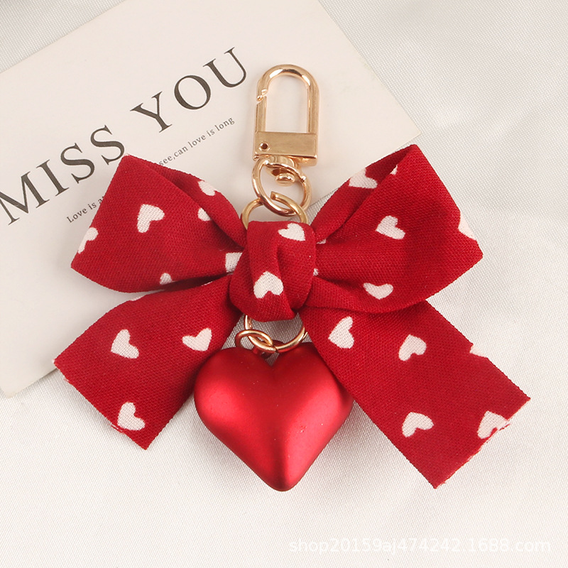 사랑 패브릭 열쇠 고리 펜던트 귀여운 사랑 꽃 리본 활 수지 사랑 액세서리 가방 장식