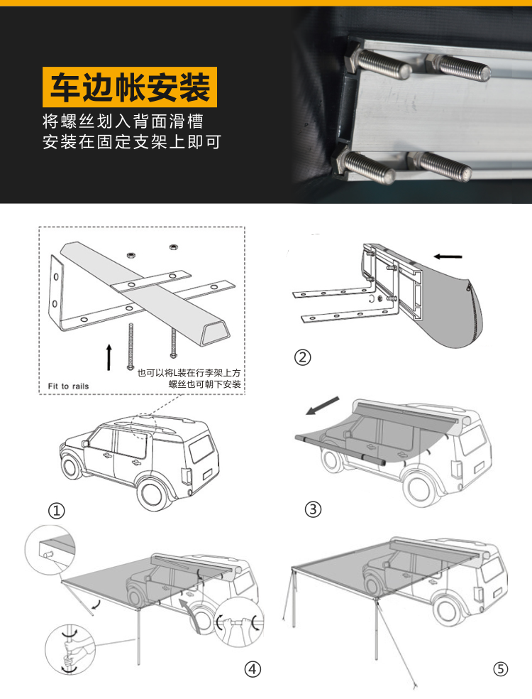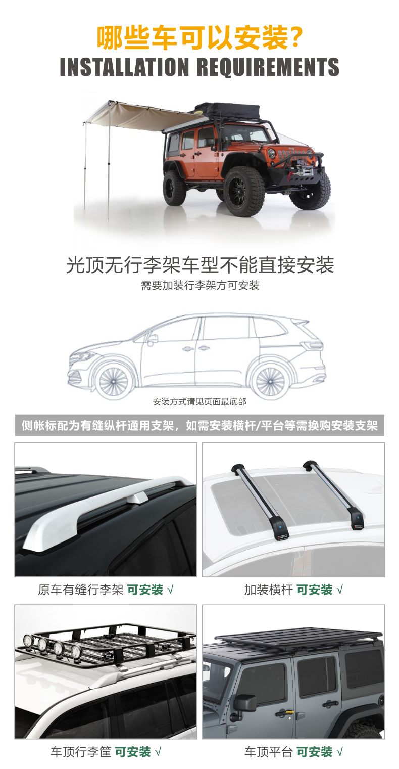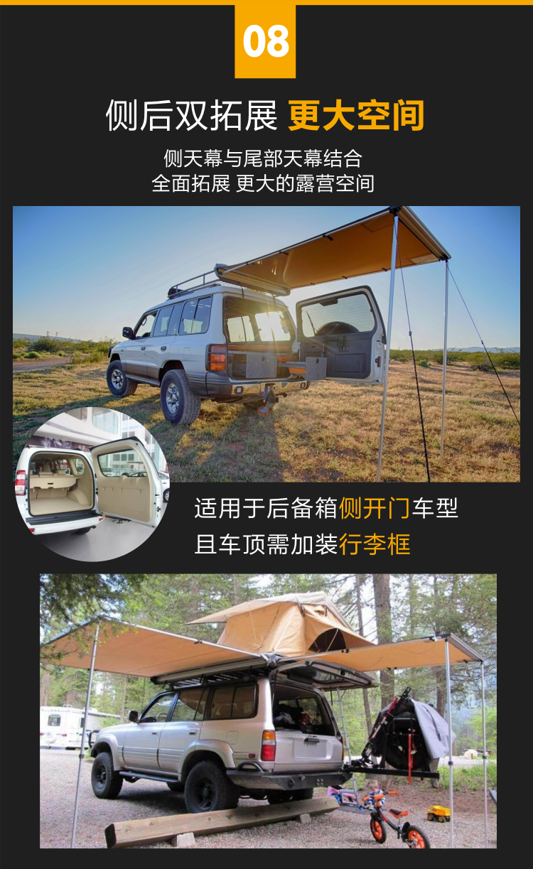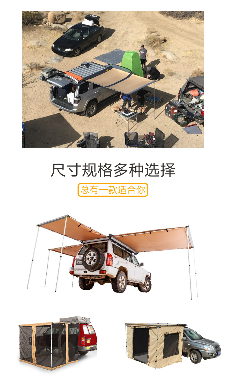 젠슨 야외 자동차 사이드 텐트 천막 캐노피 사이드 텐트 대형 SUV 자외선 차단제 비 보호 오프로드 자동차 천 룸 비 ARB스토어 가기
