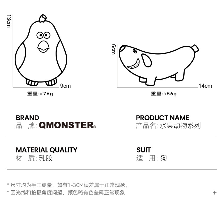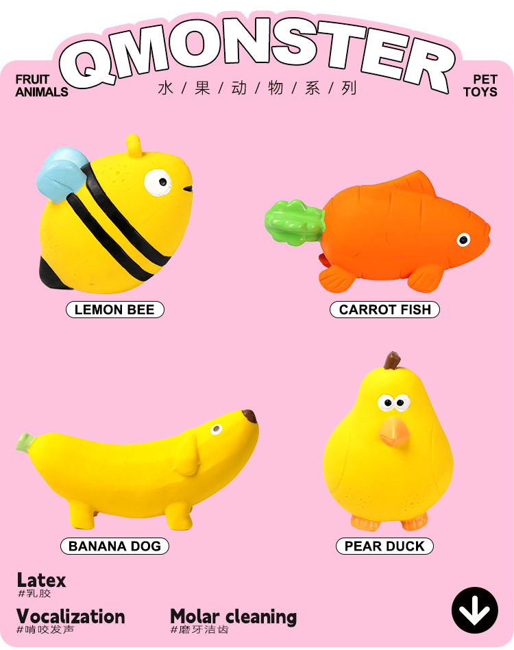 Qmaster 라텍스 장난감 과일 동물 보컬 어금니 물린 마음의 평화 개 장난감 용품스토어 가기