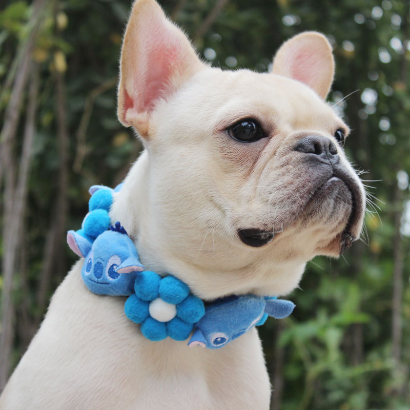 개 만화 웃는 얼굴 꽃 고리 차이 개 황금 모피 스카프 일본 소 · 중 · 대형 개 애완 동물 액세서리 도매스토어 가기