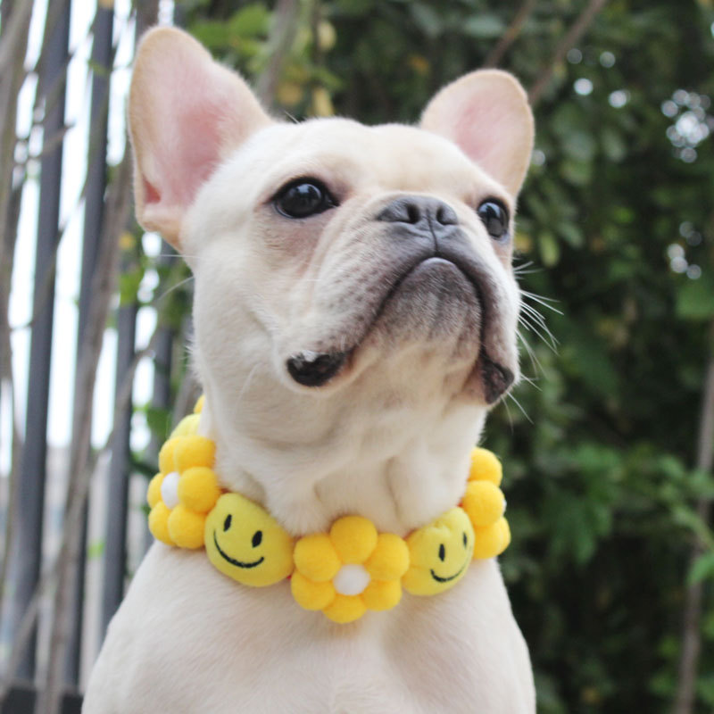 개 만화 웃는 얼굴 꽃 고리 차이 개 황금 모피 스카프 일본 소 · 중 · 대형 개 애완 동물 액세서리 도매