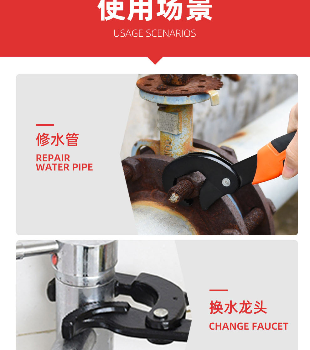유니버설 렌치 조정 가능한 파이프 도구 플라이어 이동식 스패너 욕실 다기능 범용 파이프 렌치 세트 개방스토어 가기