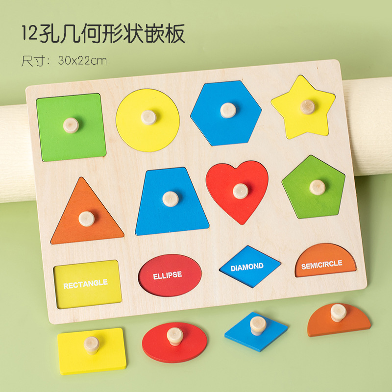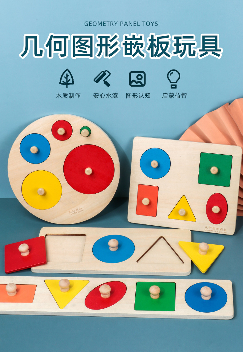 몬테소리 기하학적 패널 퍼즐 교구 나무 1-3 어린이 모양 페어링 퍼즐 퍼즐 빌딩 블록 장난감