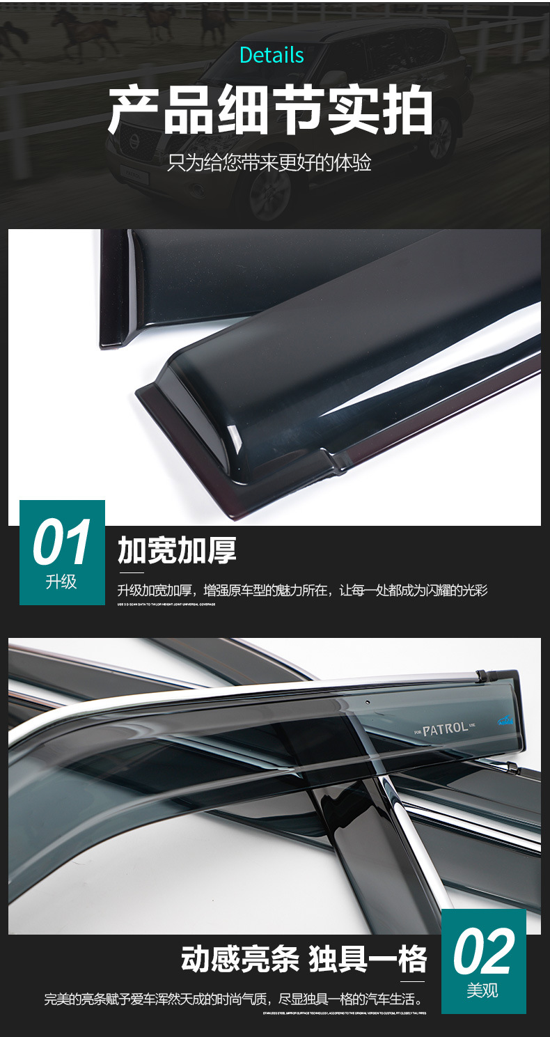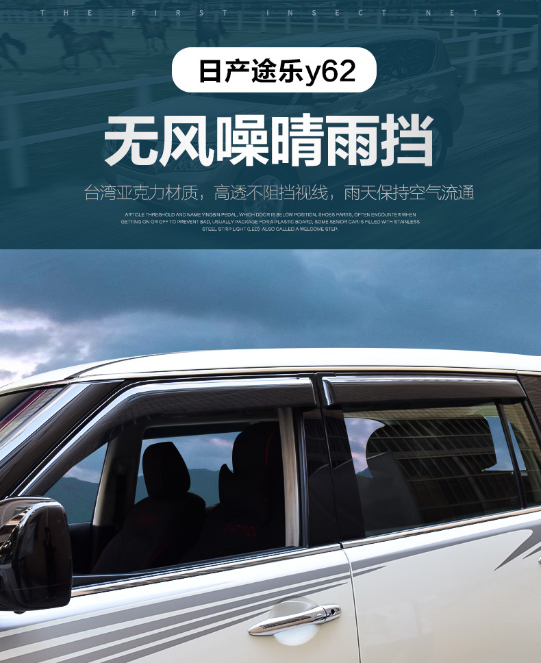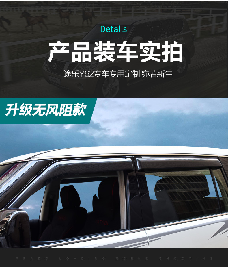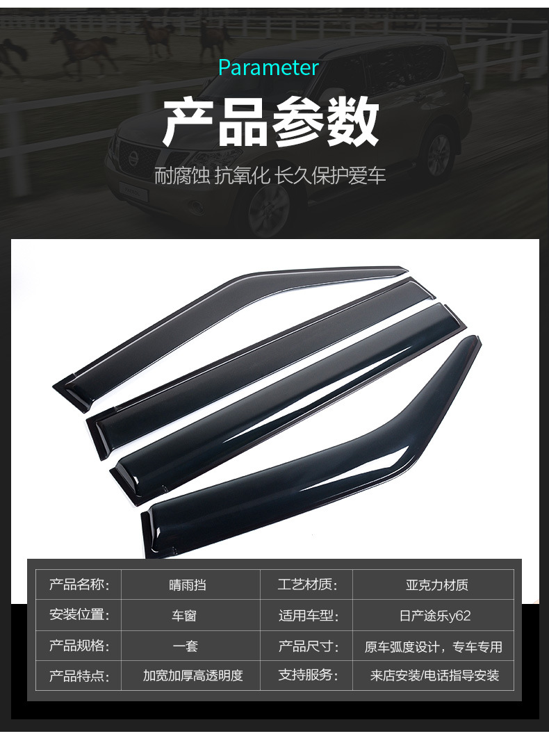 10-20 닛산 Tule Y62 맑은 비 차단기 Tule 창 비 눈썹 수정 특수 액세서리에 적합스토어 가기
