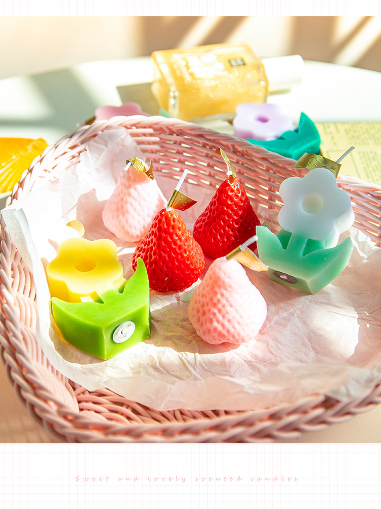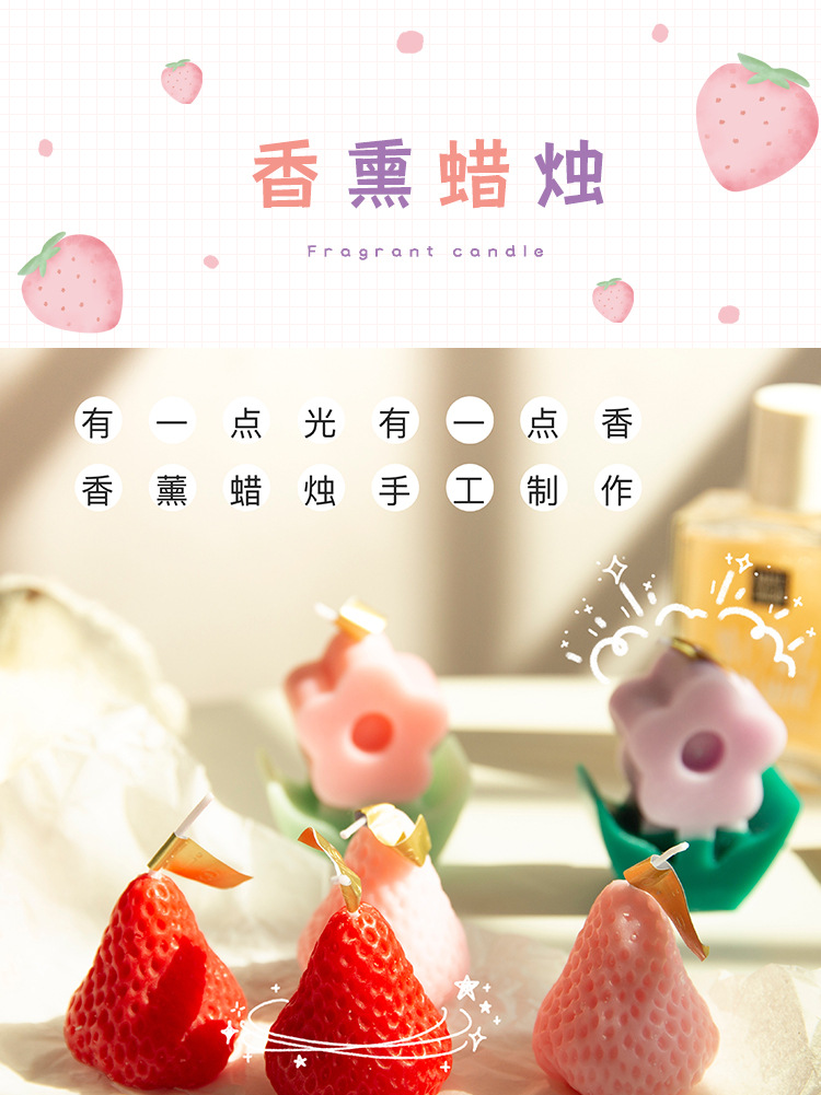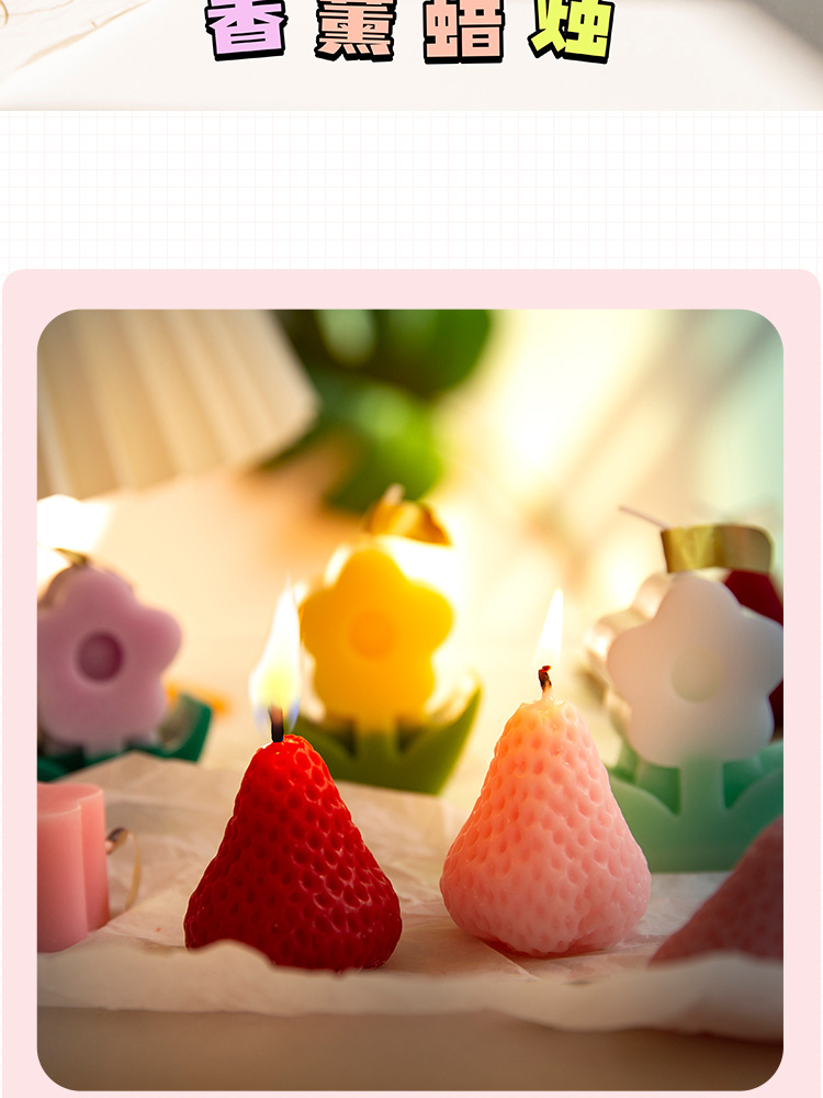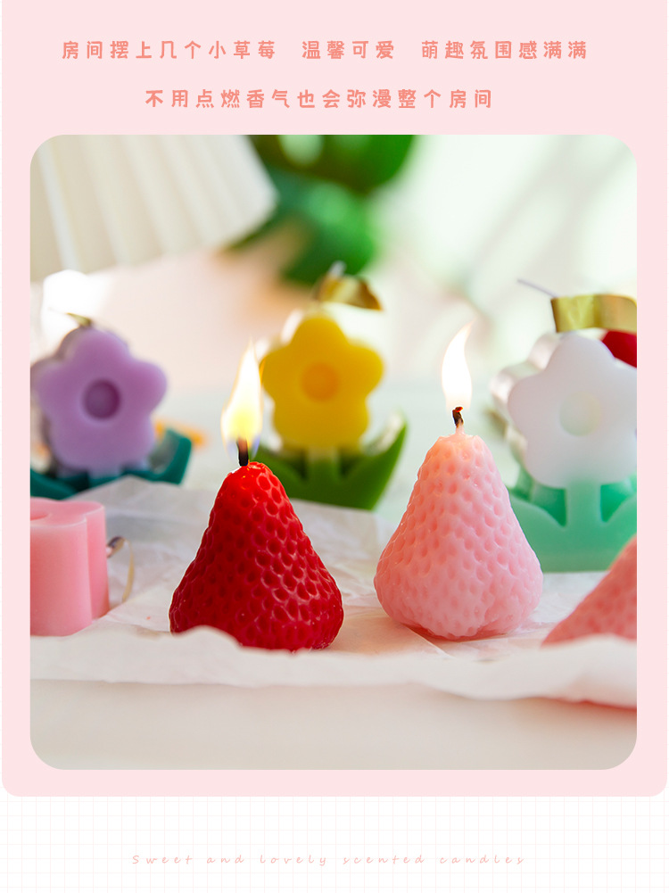귀여운 딸기 아로마 테라피 양초 스타일 소녀 심장 실내 데스크탑 홈 장식 장식품 사진 소품 선물