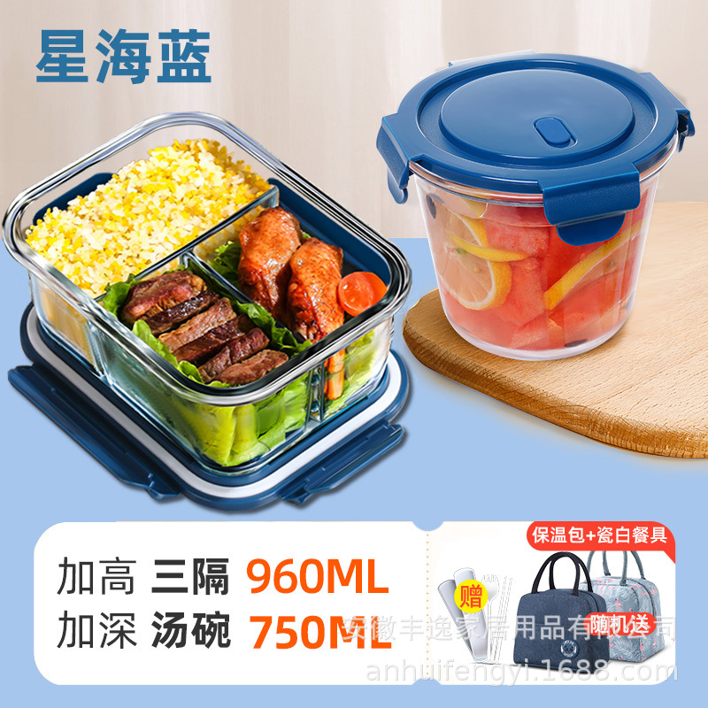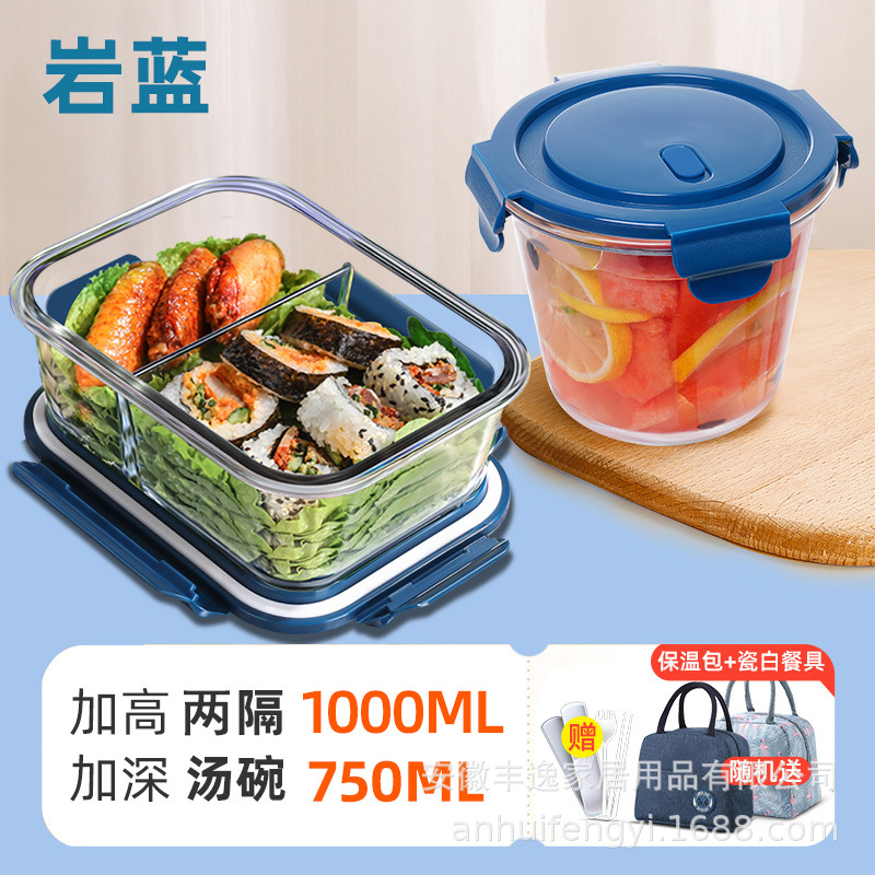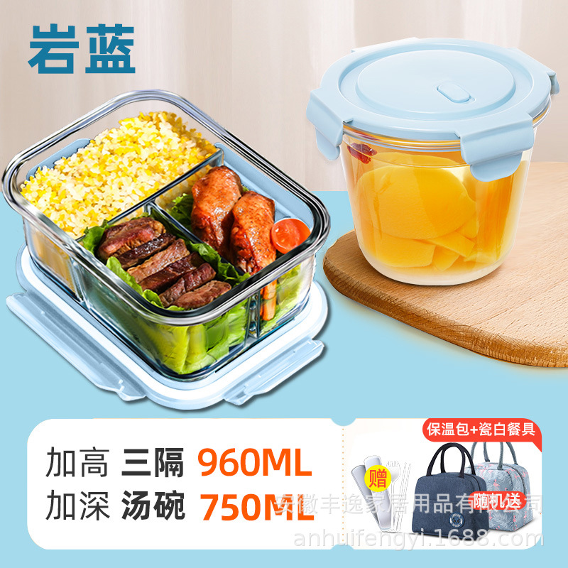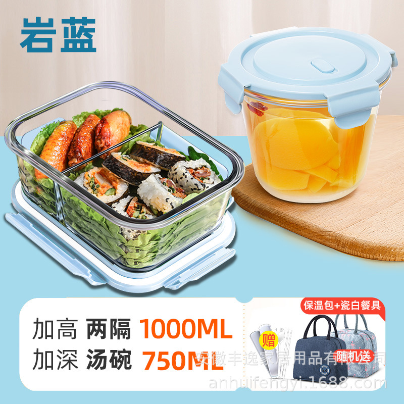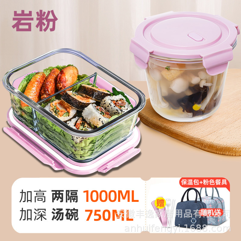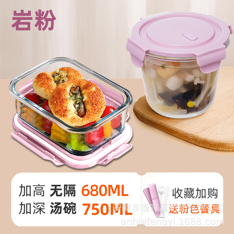 유리 도시락 사무실 노동자 도시락 봉인 수프 박스 마이크로파 난방 특수 그릇 뚜껑 높은 온도 저항하는 수프 컵 휴대용