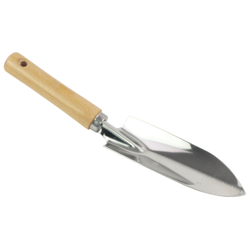 나무 손잡이 스테인레스 원예 삽 꽃 심기 꽃 파기 토양 느슨한 토양 녹 방지 단단한 나무 손잡이 꽃 삽 야외 정원 도구