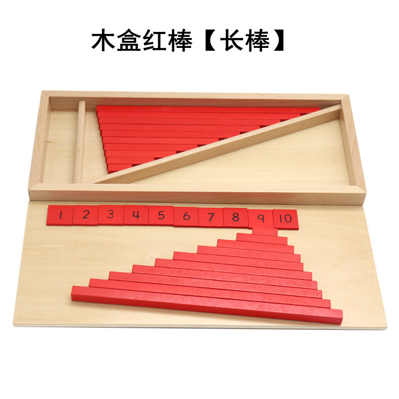 몬테소리 수학 교육 보조 나무 상자 작은 빨간색과 파란색 스틱 번호 스틱 긴 스틱 디지털 개념 인지 나무 교육 완구 국경