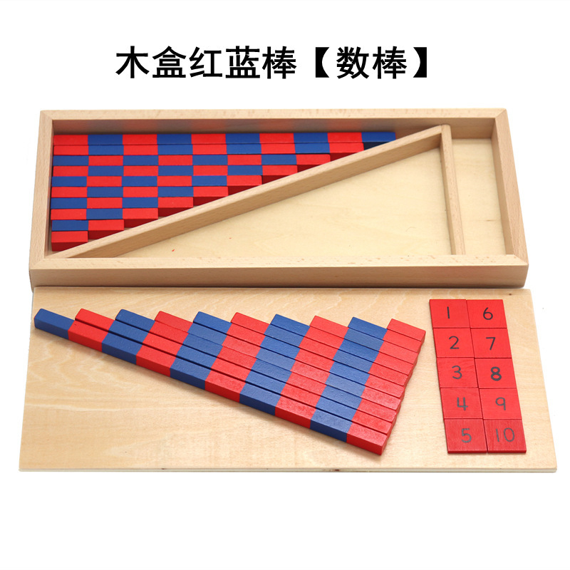 몬테소리 수학 교육 보조 나무 상자 작은 빨간색과 파란색 스틱 번호 스틱 긴 스틱 디지털 개념 인지 나무 교육 완구 국경스토어 가기