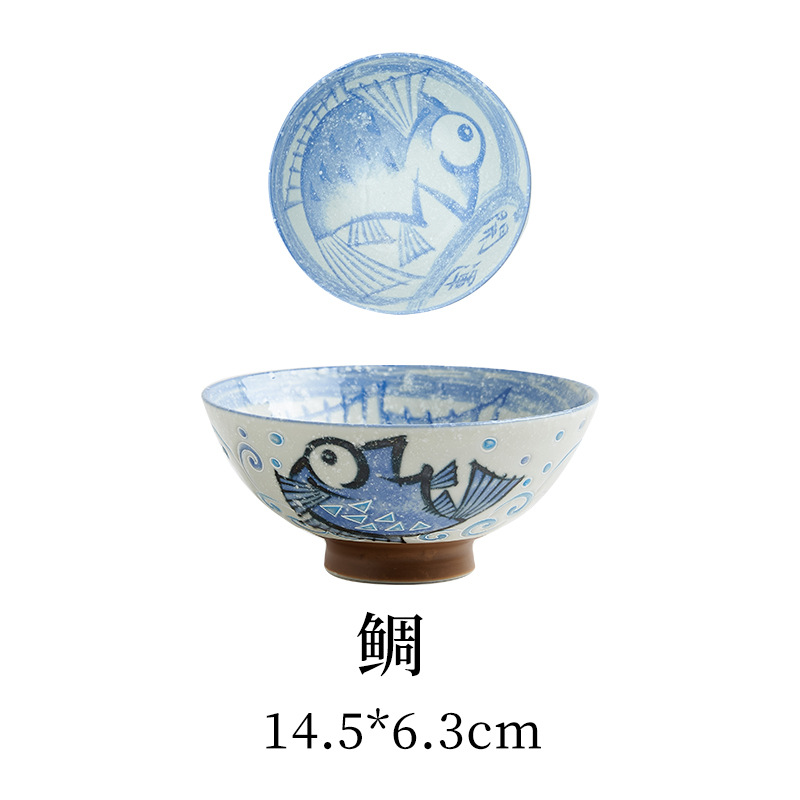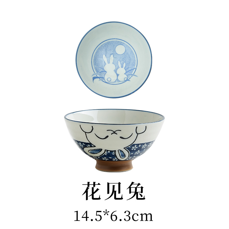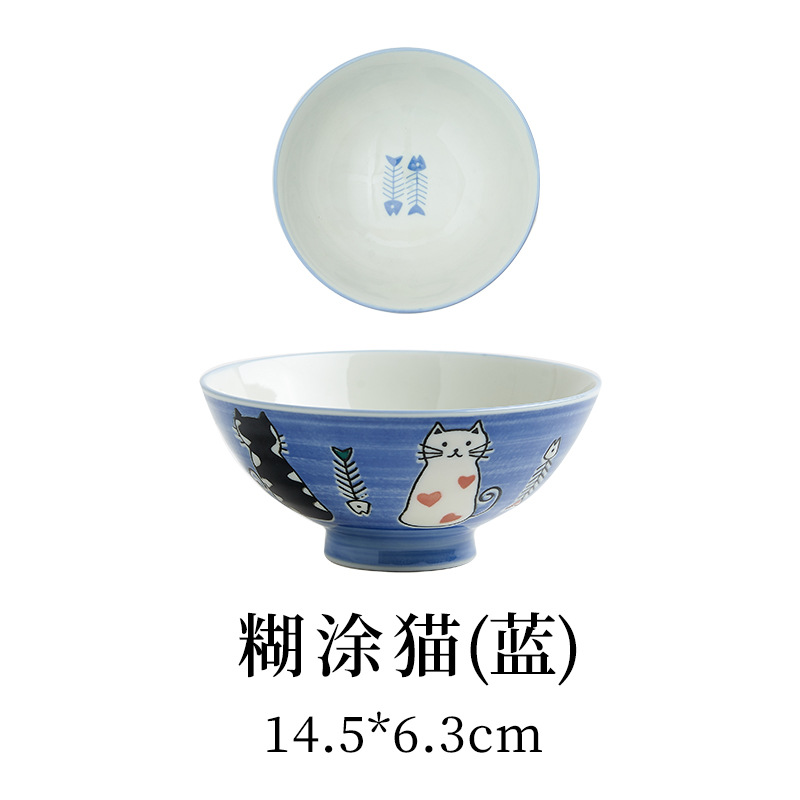 일본 수입 가정용 먹는 그릇 언더 글레이즈 색상 작은 그릇 만화 귀여운 일본식 세라믹 밥그릇과 밥그릇