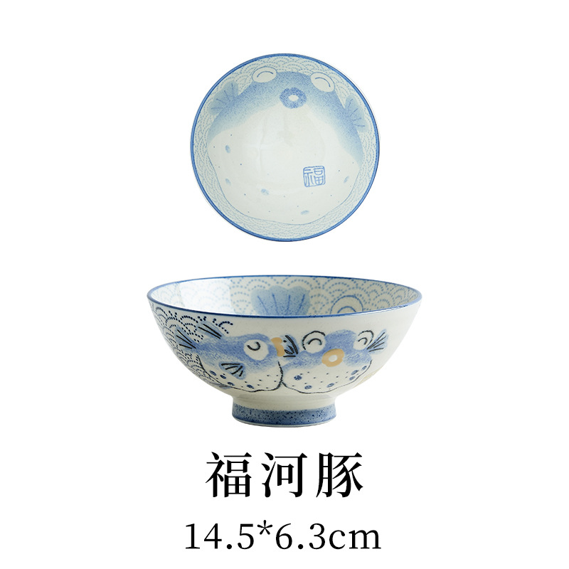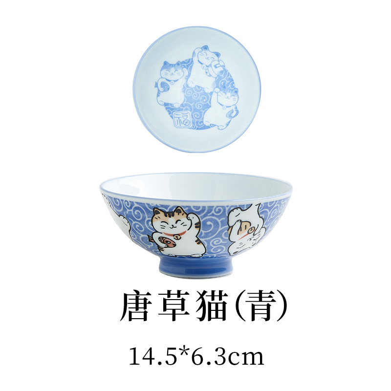 일본 수입 가정용 먹는 그릇 언더 글레이즈 색상 작은 그릇 만화 귀여운 일본식 세라믹 밥그릇과 밥그릇스토어 가기