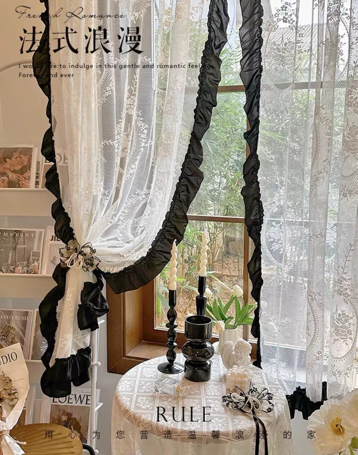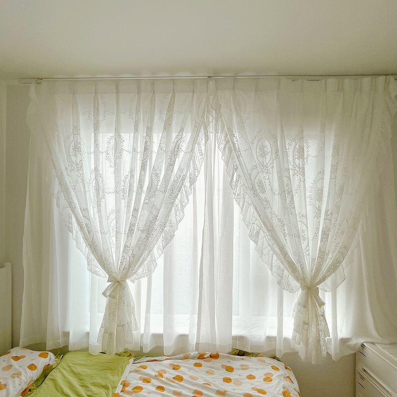 프랑스식 엠보싱 트리코 로코코 레이스 커튼 유럽식 창문 커튼 거실 발코니 레이스 커튼 반차광스토어 가기