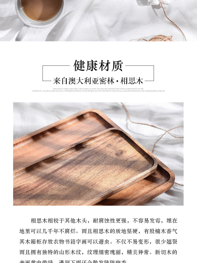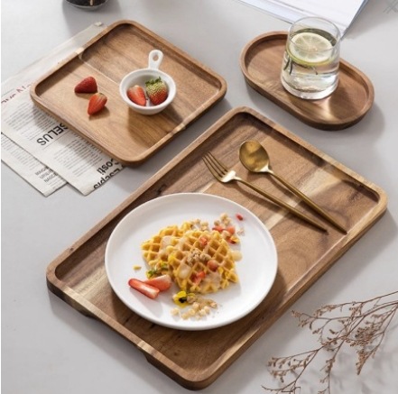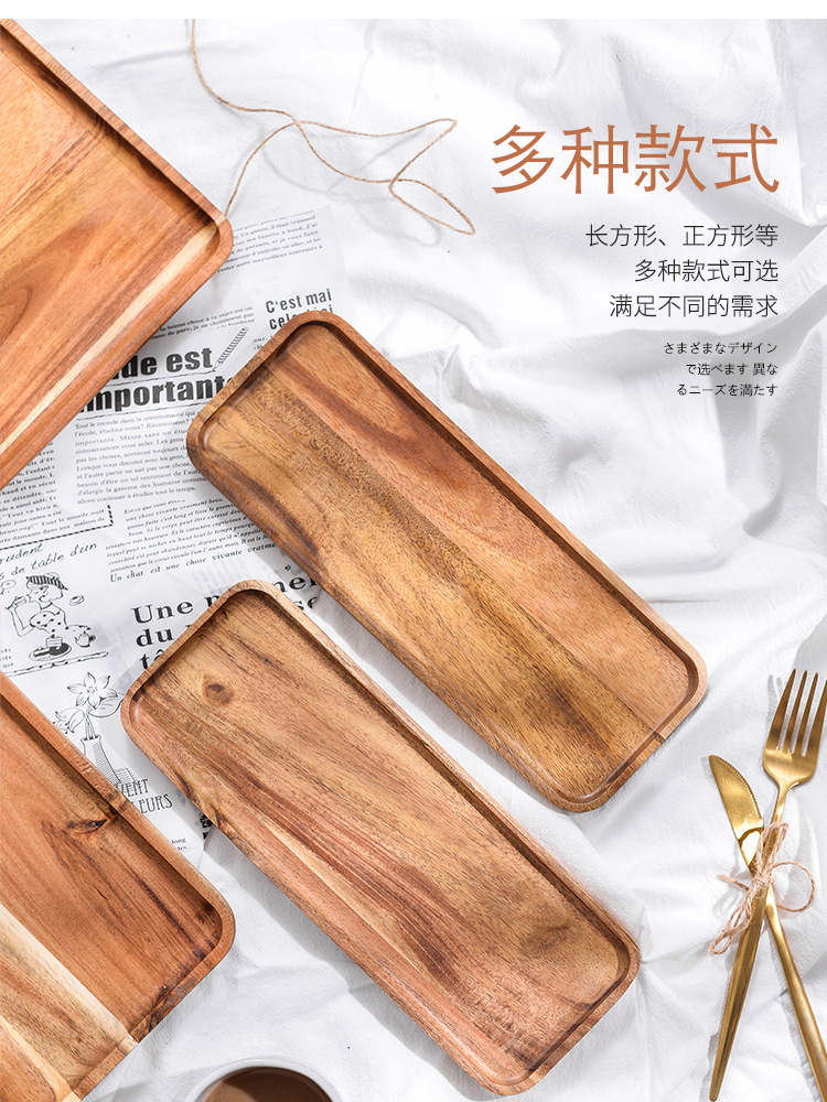나무 아카시아 원목 트레이 직사각 트레이 원형 트레이 일본식 차 트레이 본 트레이 디저트 과일 트레이 케이크 나무 접시스토어 가기