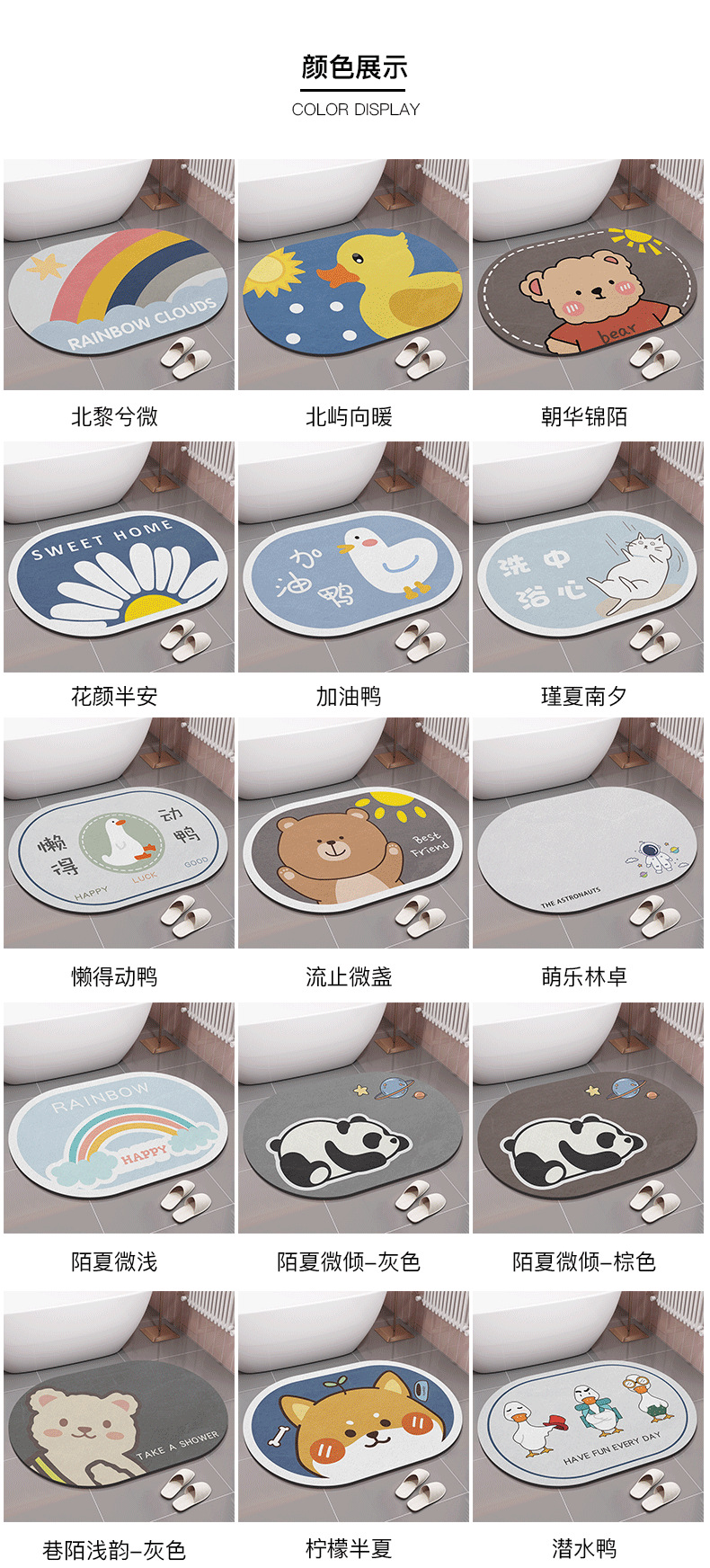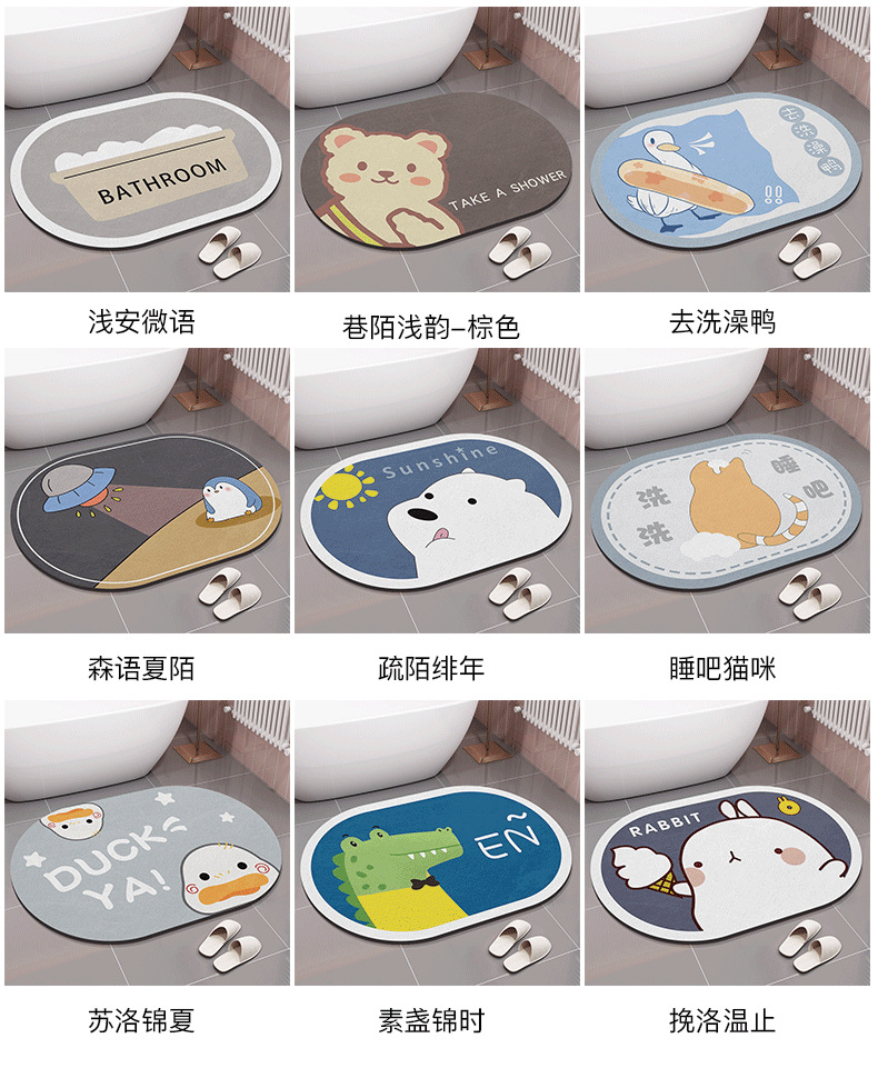 만화 규조토 진흙 흡수 매트 화장실 바닥 매트 부드러운 규조토 미끄럼 방지 욕실 발 매트 욕실 화장실 바닥 담요스토어 가기