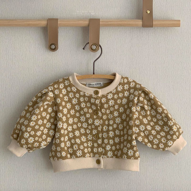 아기 아기 가을과 겨울에 한국 스타일 달콤한 이웃 꽃 자켓 작은 달 나이 퍼프 슬리브 공주 탑스토어 가기